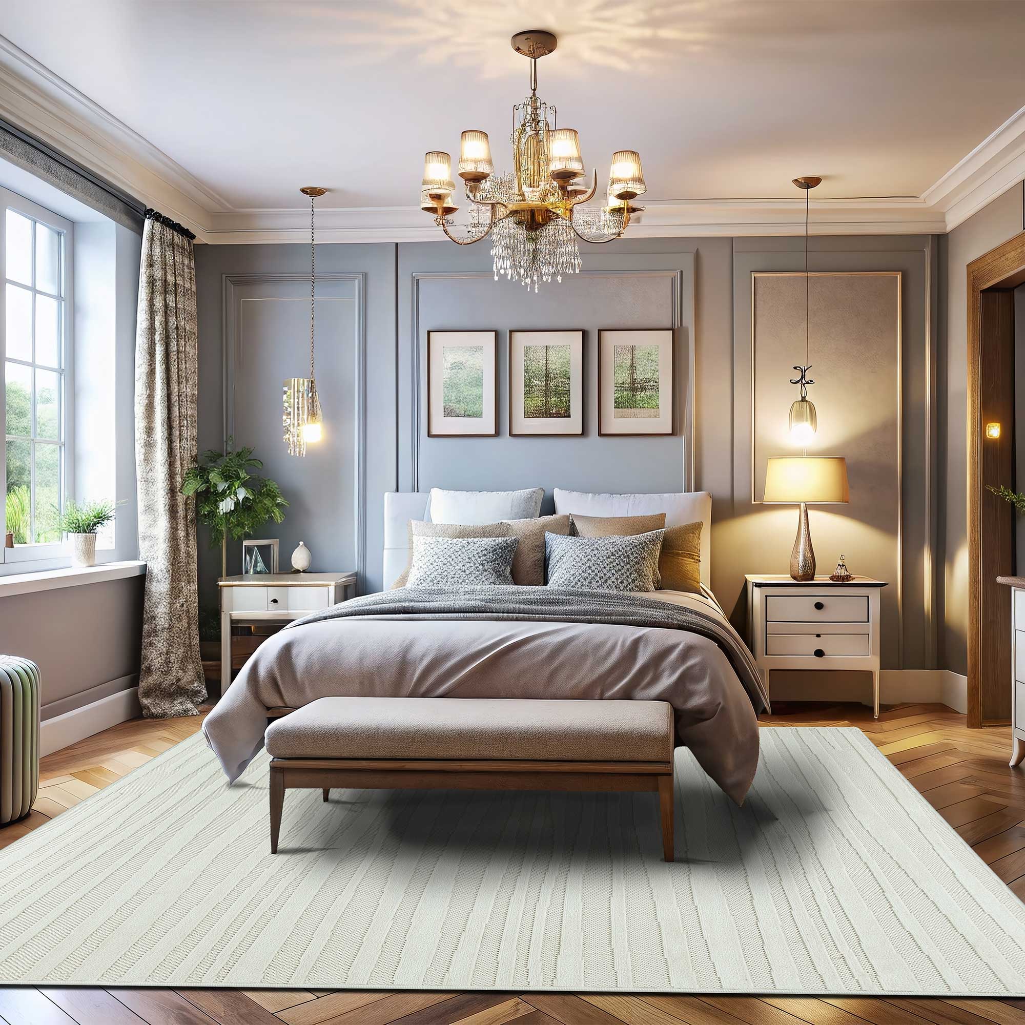 Dodatkowo, ich powierzchnia delikatnie połyskuje, nadając wnętrzu luksusowy, dynamiczny charakter. Każdy dywan został wykończony BAWEŁNIANYM SPODEM, co zapewnia trwałość, stabilność oraz dodatkowy komfort użytkowania.To doskonałe połączenie elegancji, trwałości i funkcjonalności, które odmieni każde wnętrze.