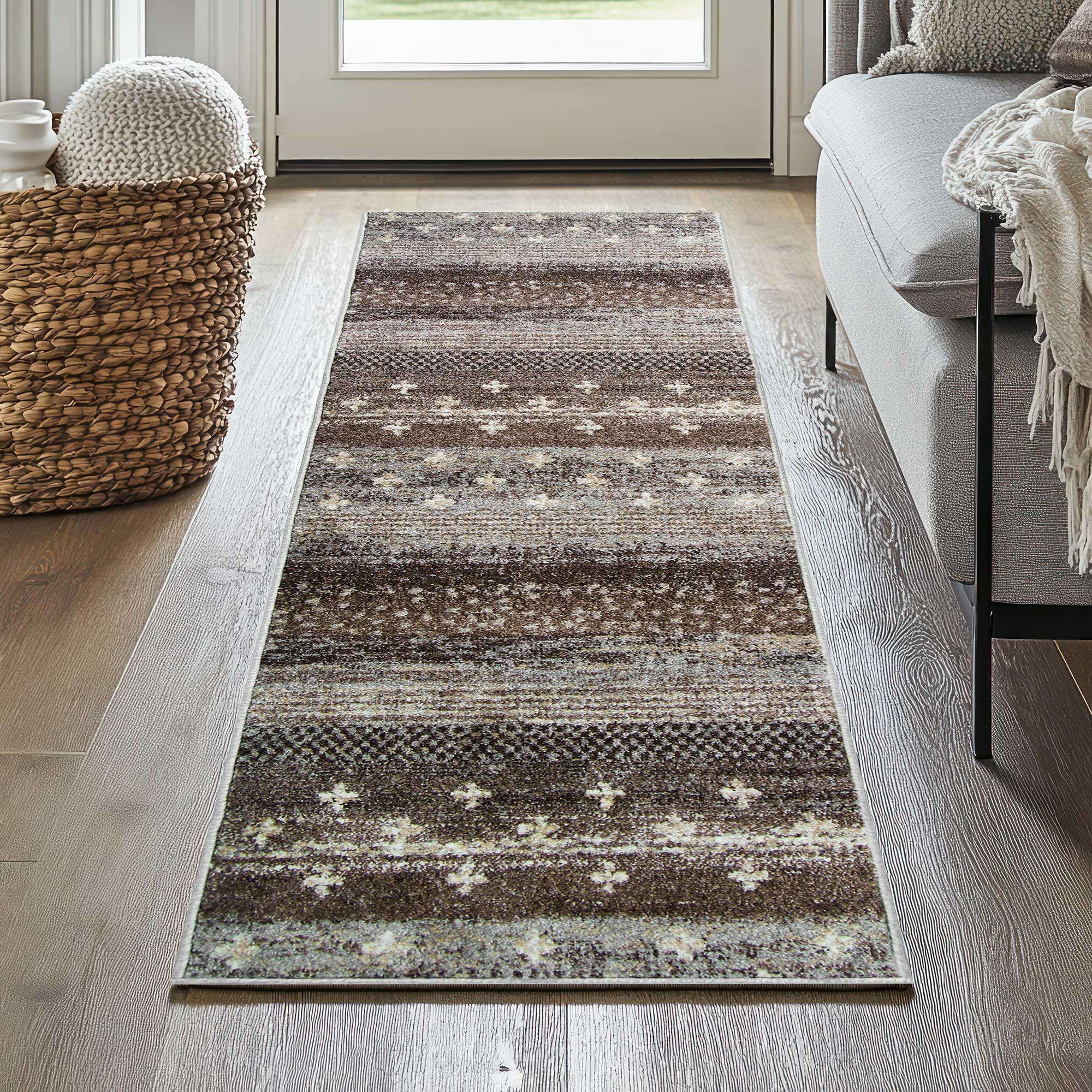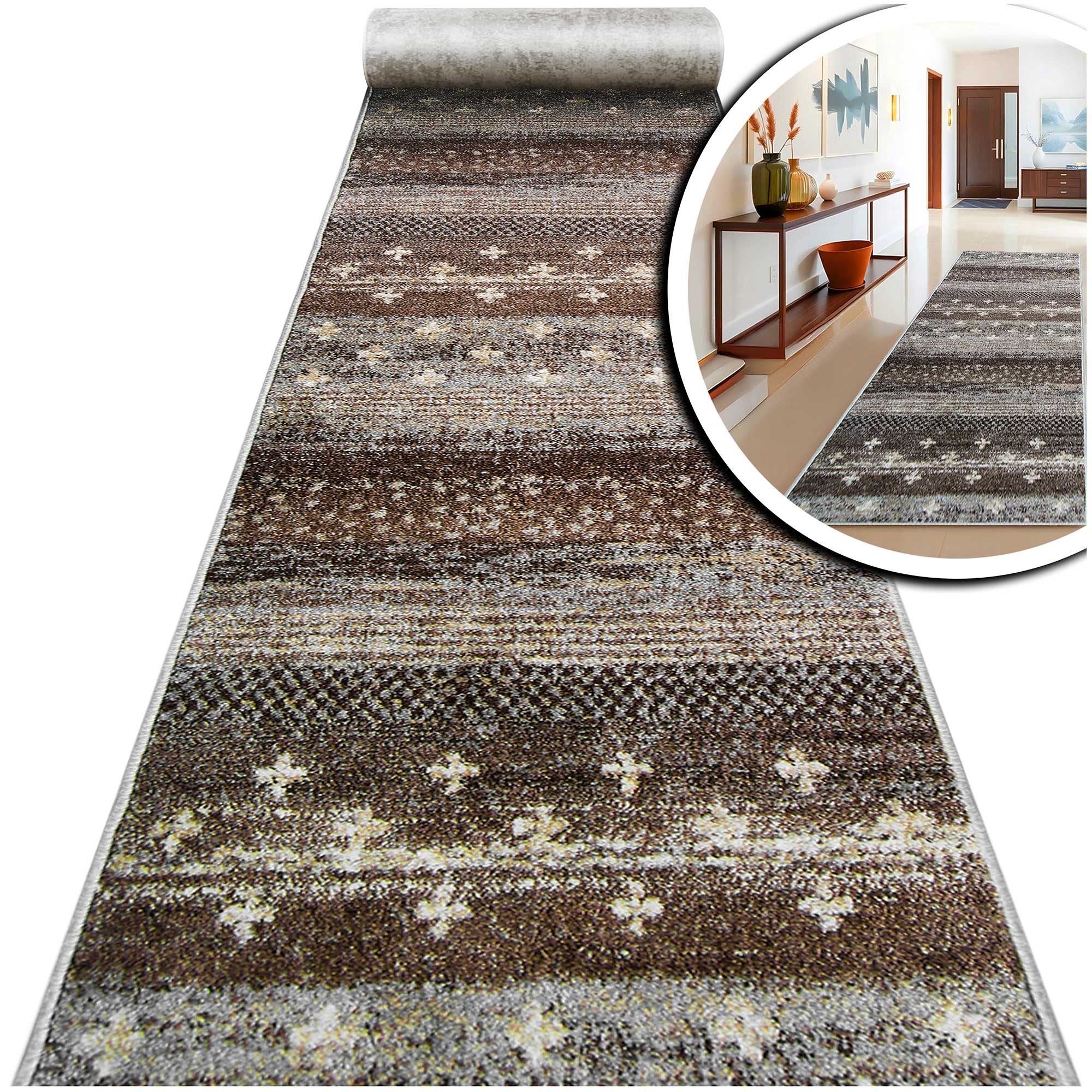 BRĄZOWY CHODNIK na wymiar do przedpokoju CHODNIKI Z METRA OBSZYTY (Adventure 17884-18421), 70cm