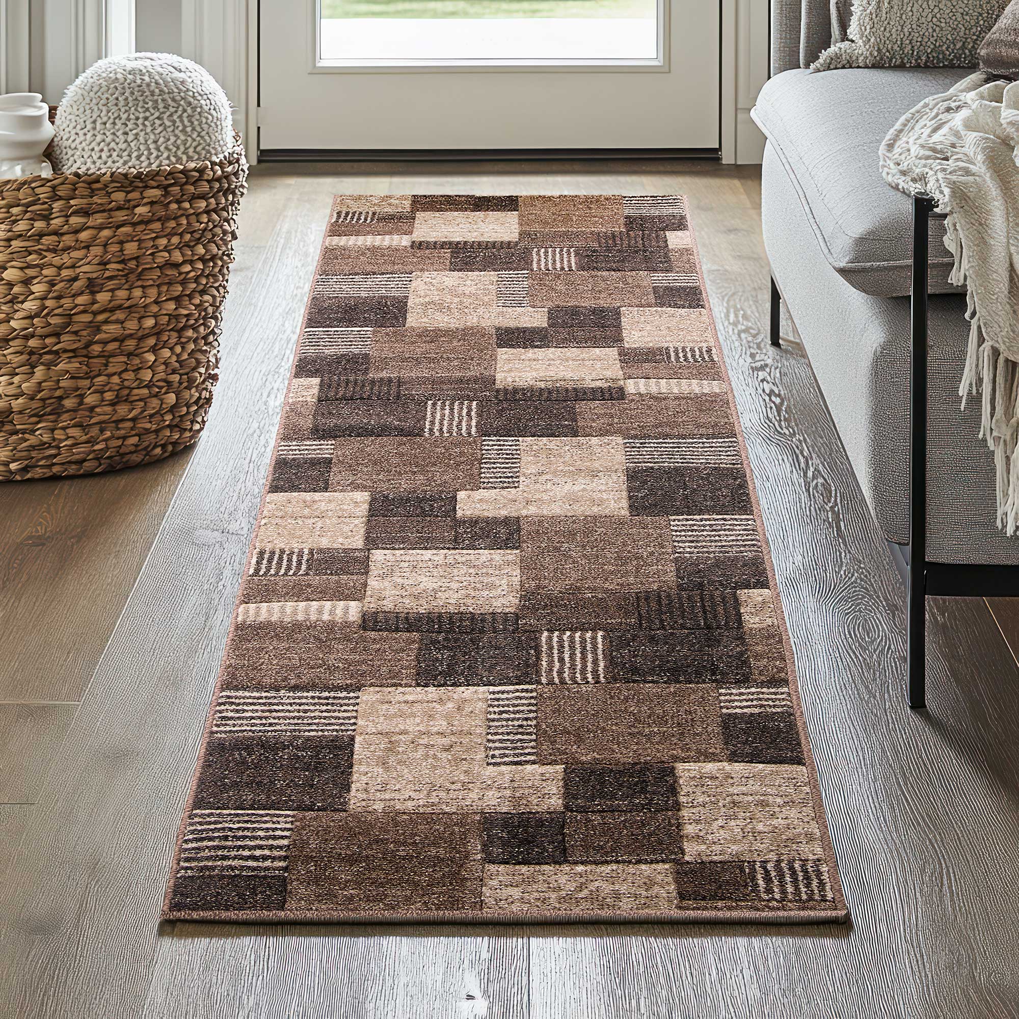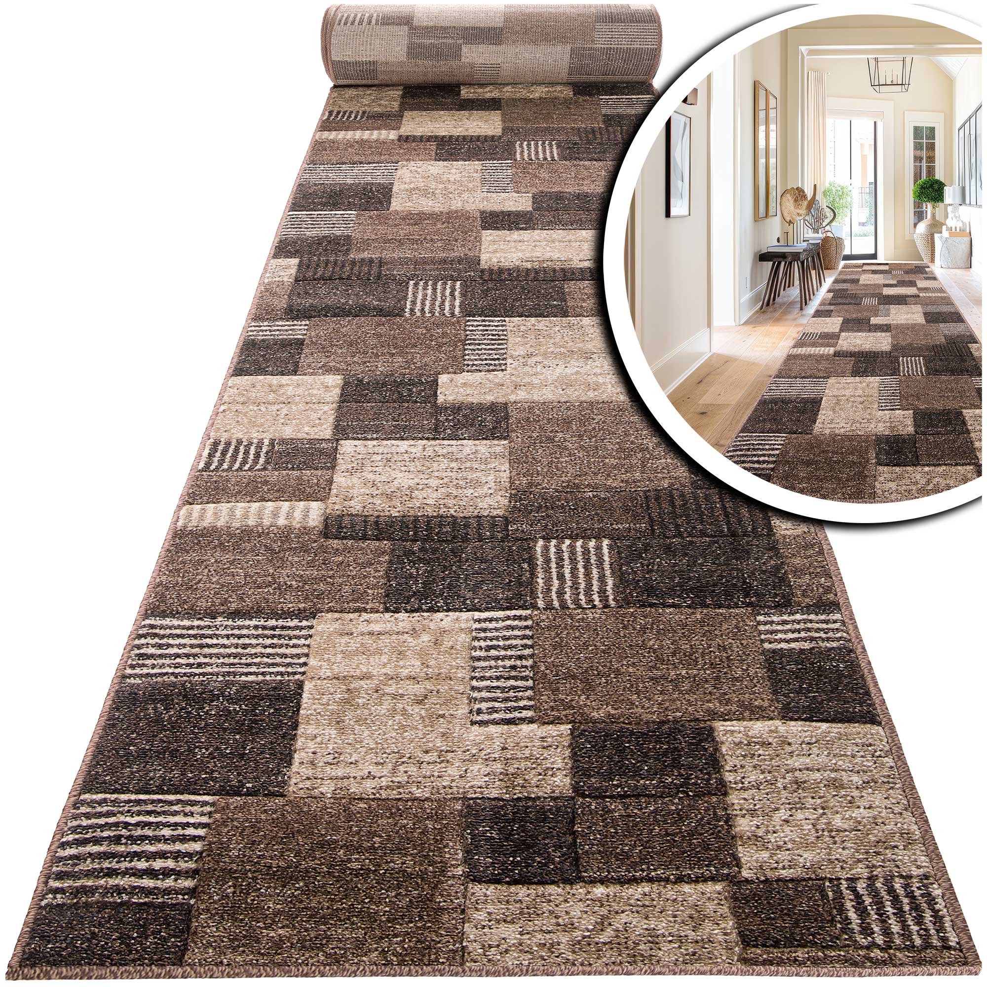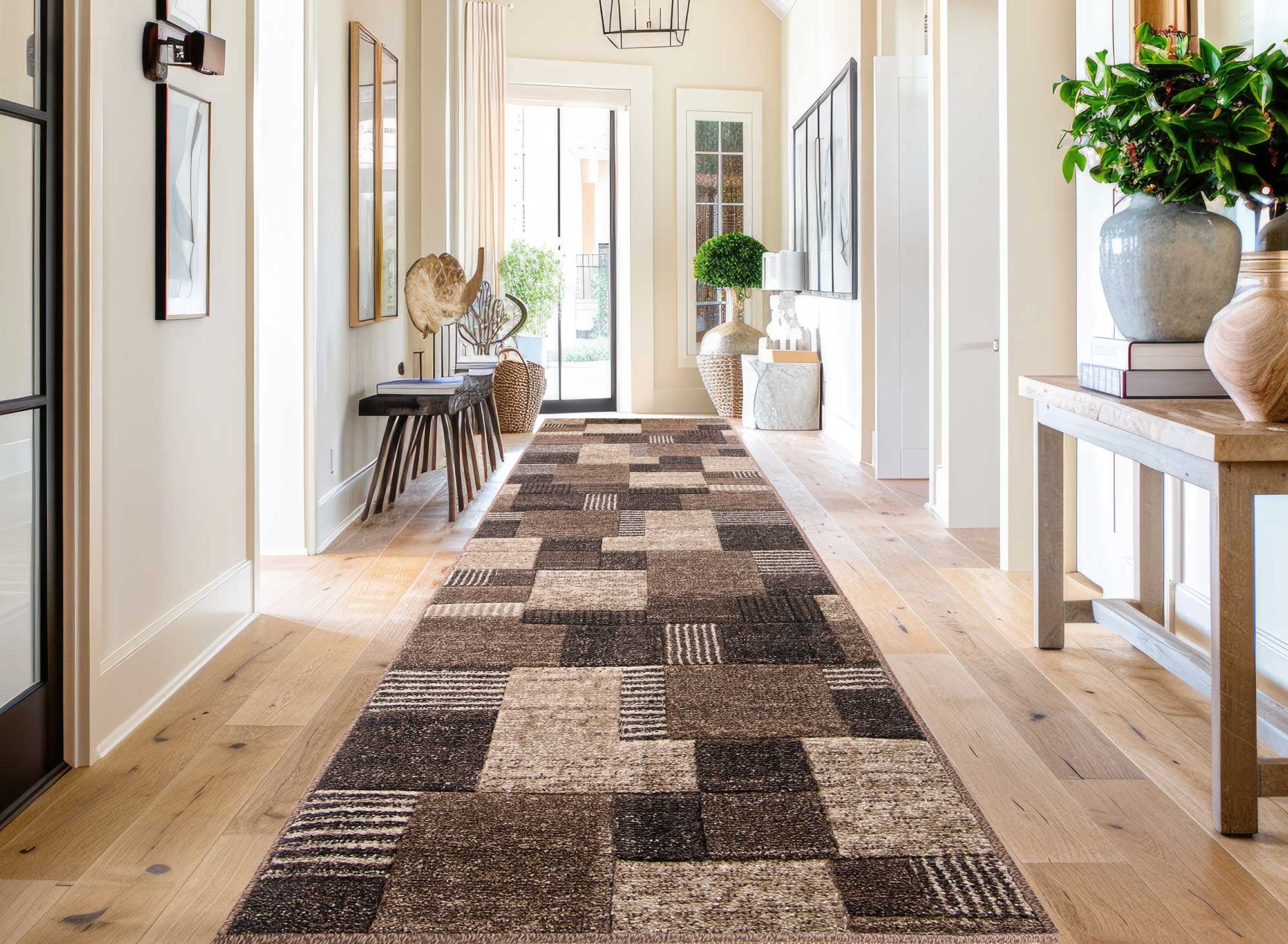 BRĄZOWY CHODNIK na wymiar do przedpokoju CHODNIKI Z METRA OBSZYTY (Romantic 58354-18422), 100cm