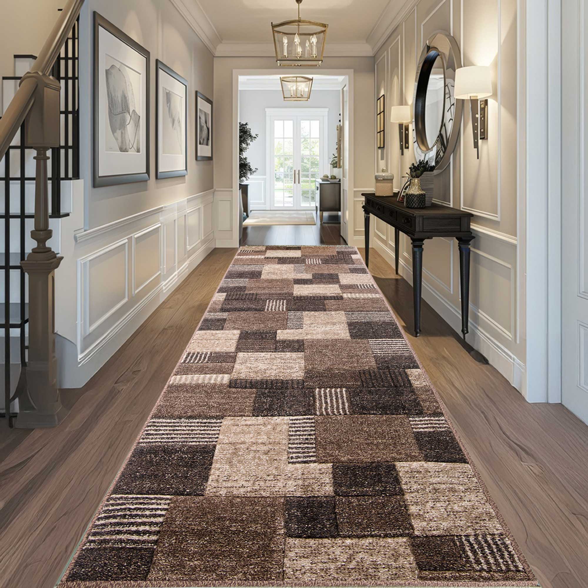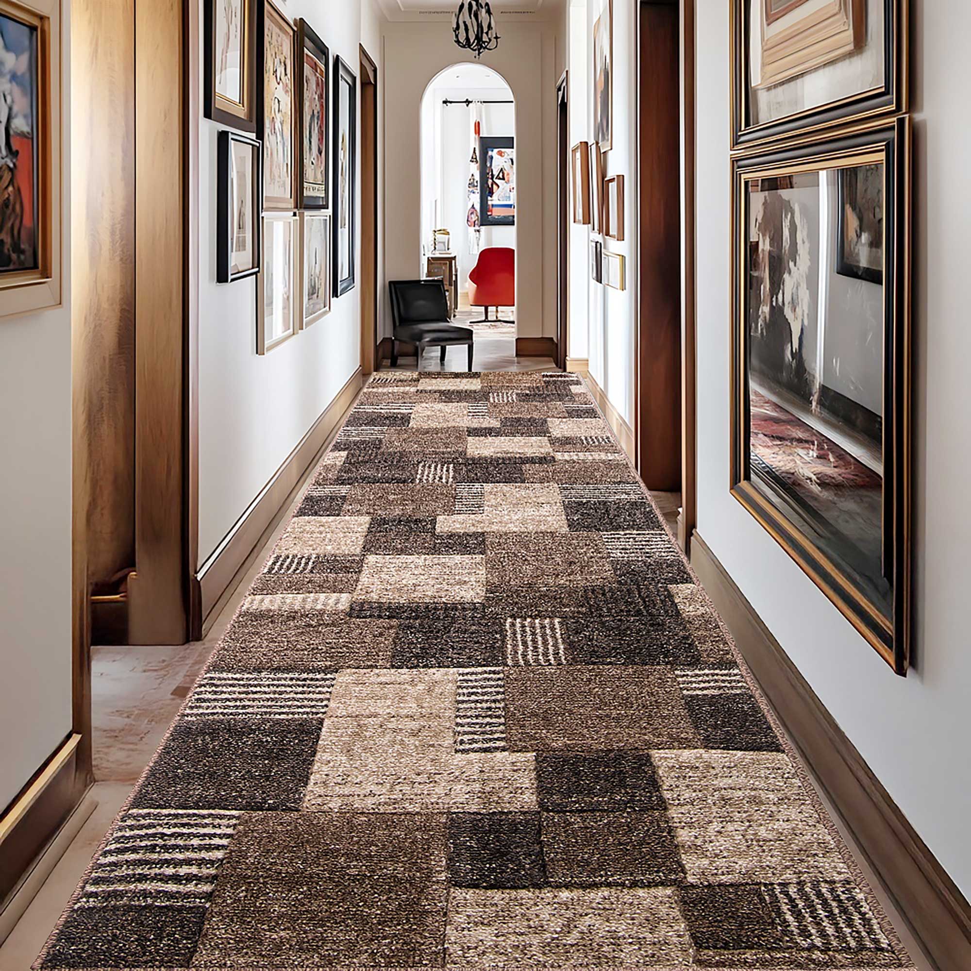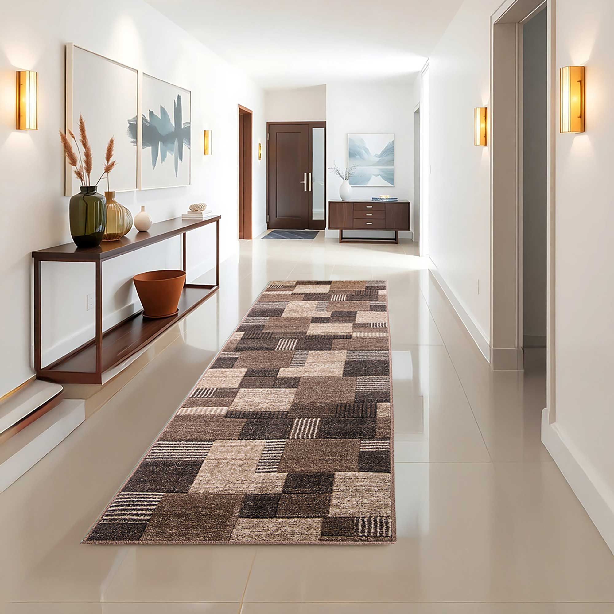 BRĄZOWY CHODNIK na wymiar do przedpokoju CHODNIKI Z METRA OBSZYTY (Romantic 58354-18422), 100cm