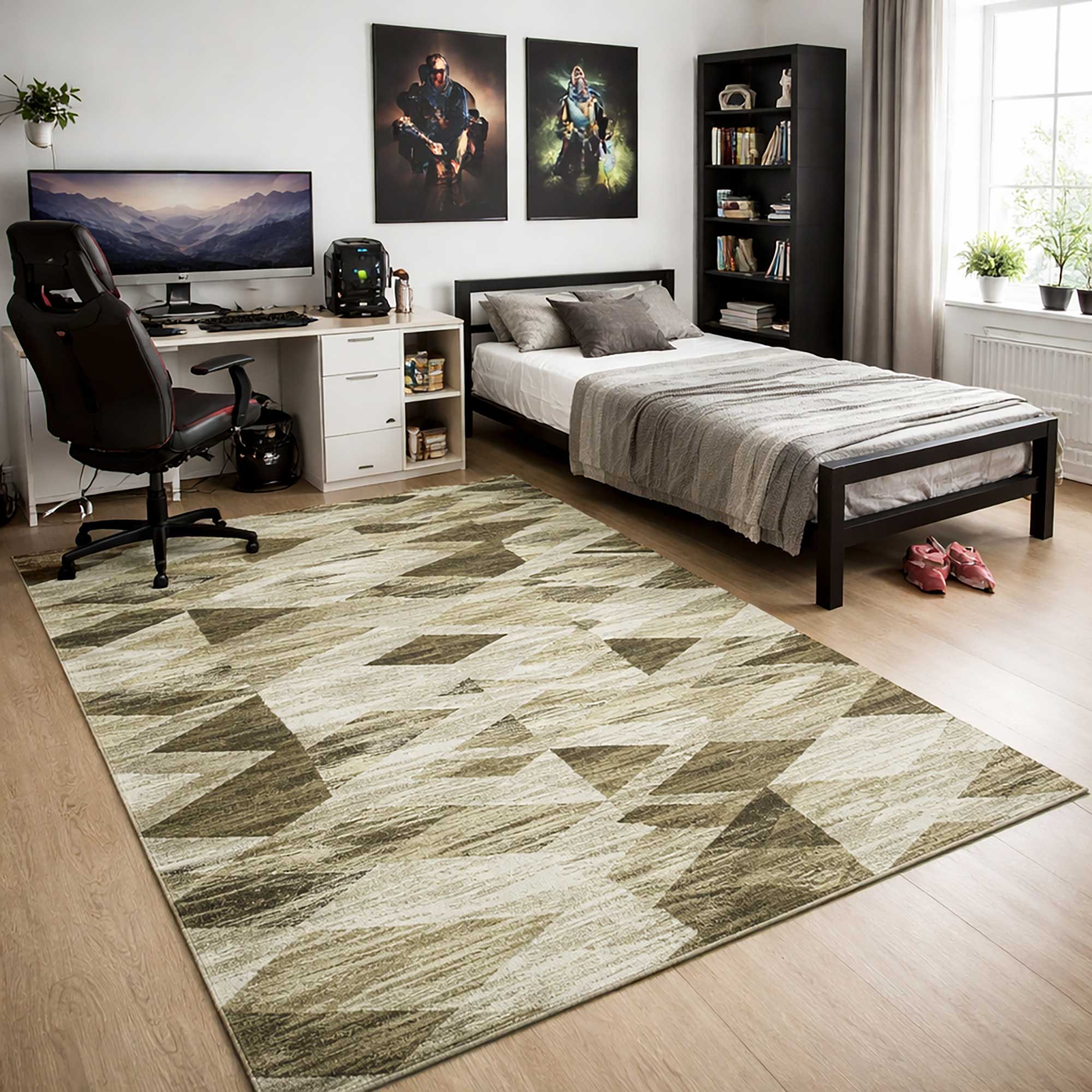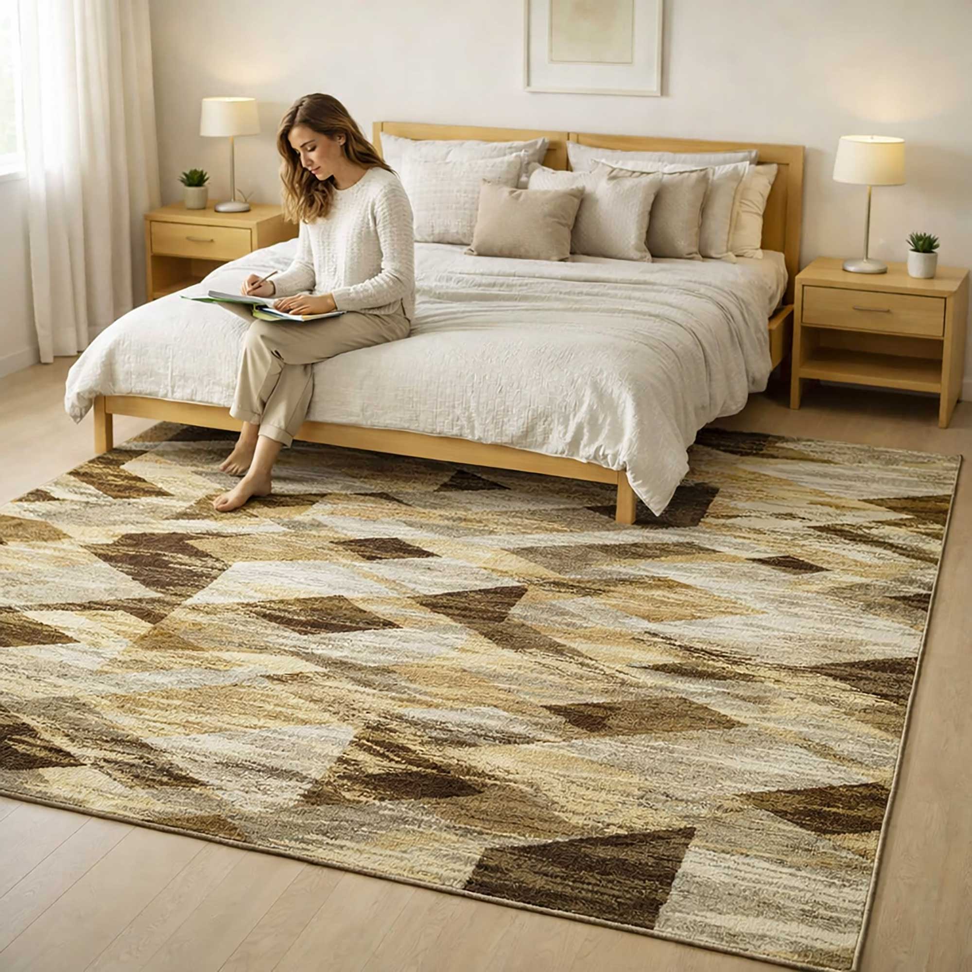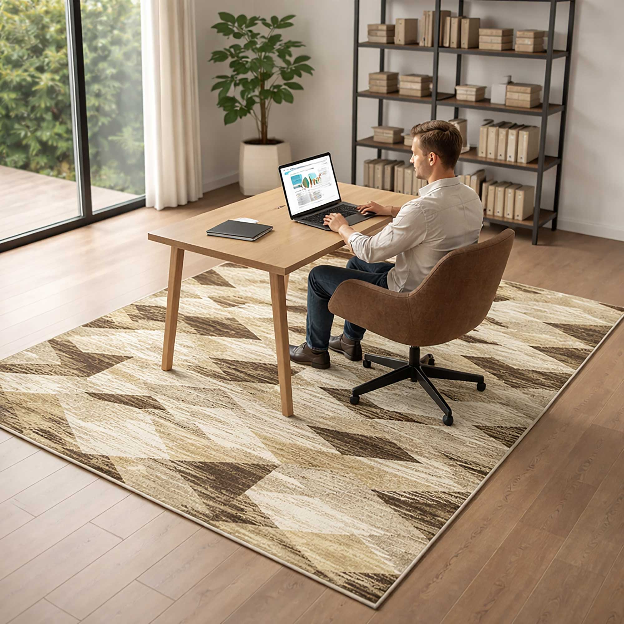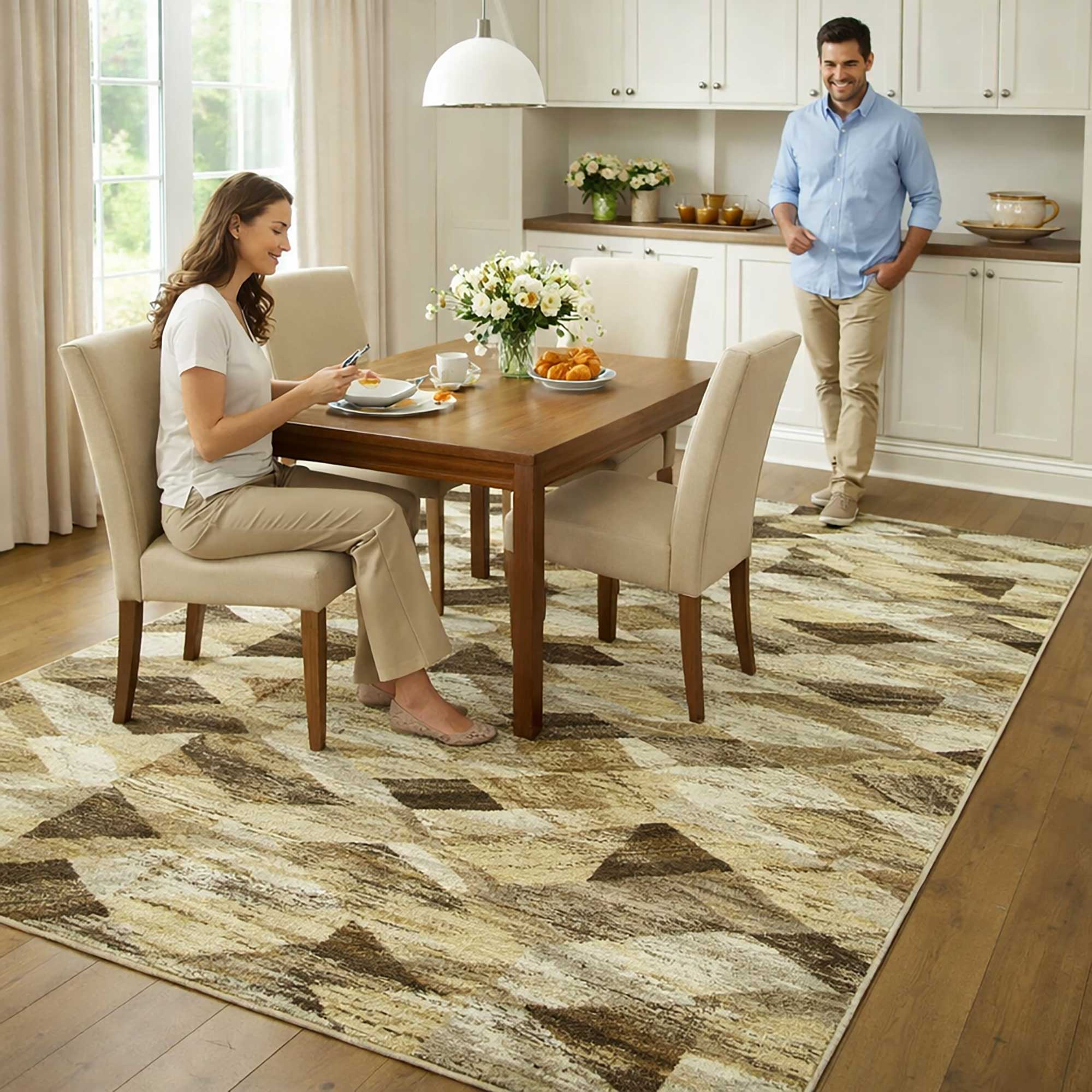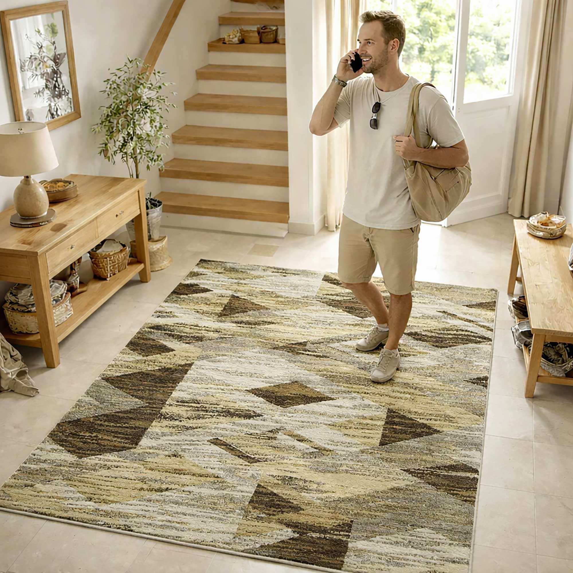 Geometryczne, stonowane kolorystycznie wzory dywanu doskonale podkreślą styl i dodadzą charakteru Państwa mieszkaniu. Ponadto, różnorodność tonacji kolorów pozwala dopasować dywan do istniejącego wystroju wnętrza, a także może pomóc w maskowaniu ewentualnych plam czy zabrudzeń, co sprawia, że dywan wygląda świeżo i elegancko przez długi czas.