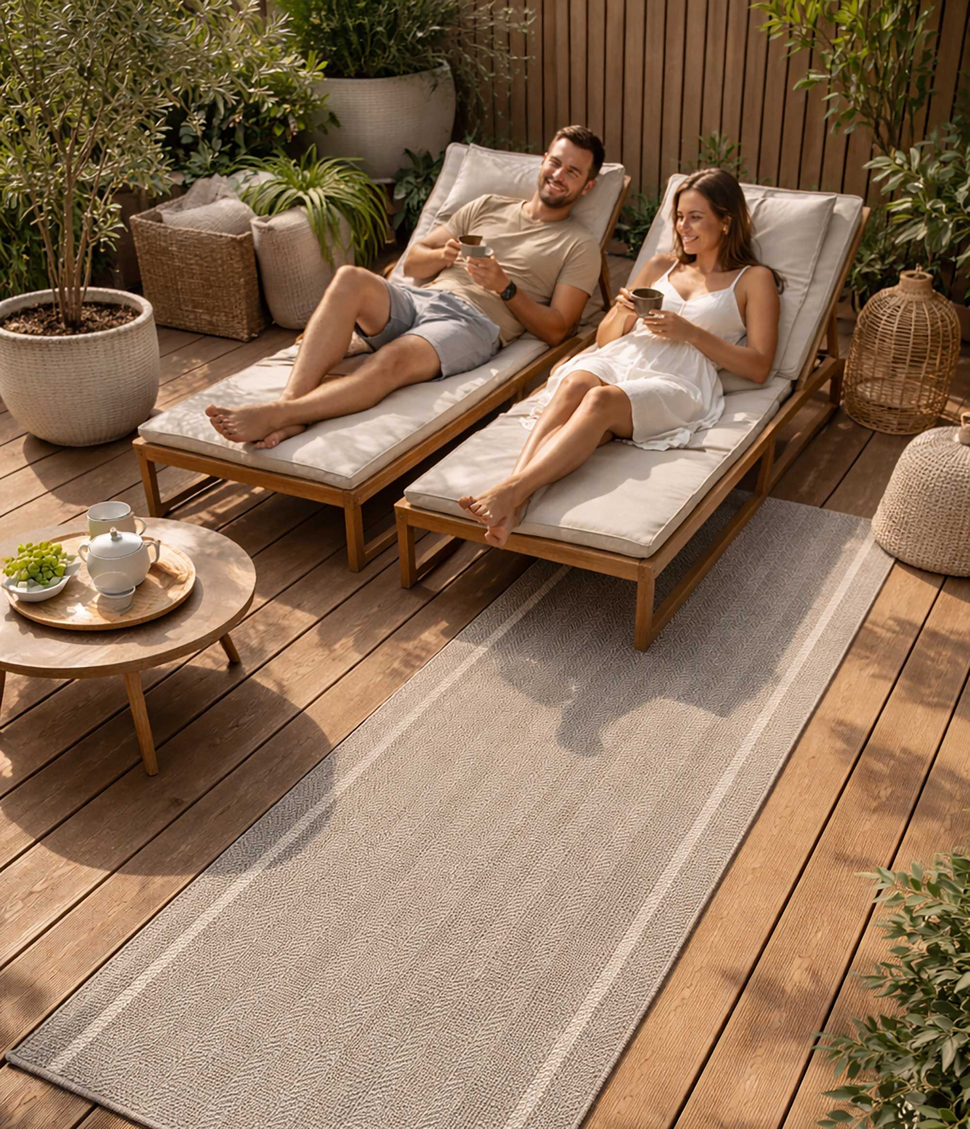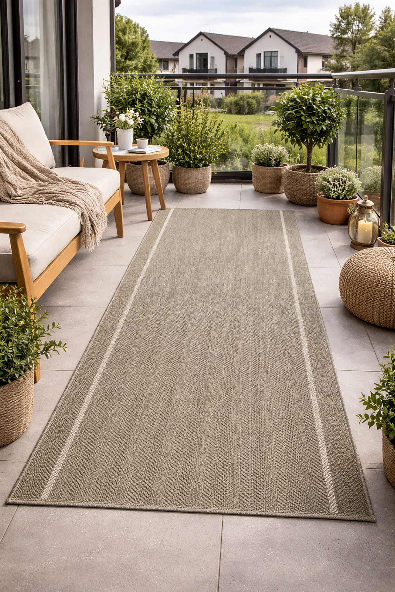 Belgijski CHODNIK DWUSTRONNY z kolekcji Lana – chodnik zewnętrzny typu plecionka (tzw. chodnik sznurkowy), to idealne rozwiązanie na balkon, na taras, a także jako chodniczek kuchenny. Doskonale wpisuje się w aranżacje boho, nowoczesne oraz loftowe. Co ważne, oferowany jest jako chodnik na wymiar – docinany i obszywany z metra, dzięki czemu perfekcyjnie dopasujesz go do swojej przestrzeni. Jesteśmy wyłącznymi dystrybutorami tej kolekcji chodników na terenie Polski.