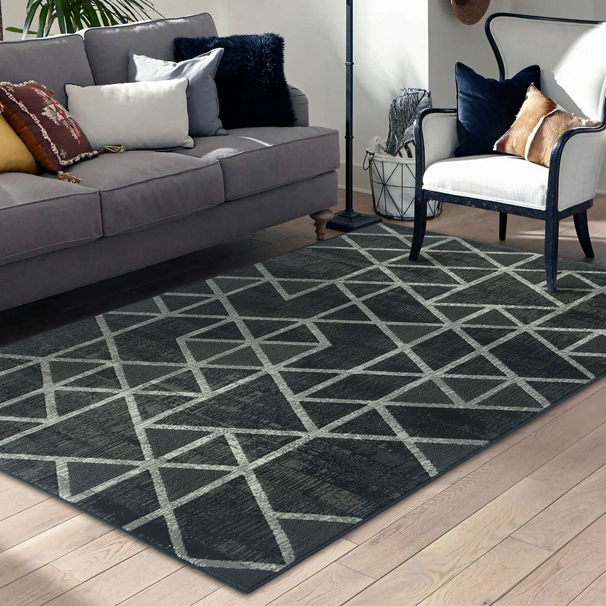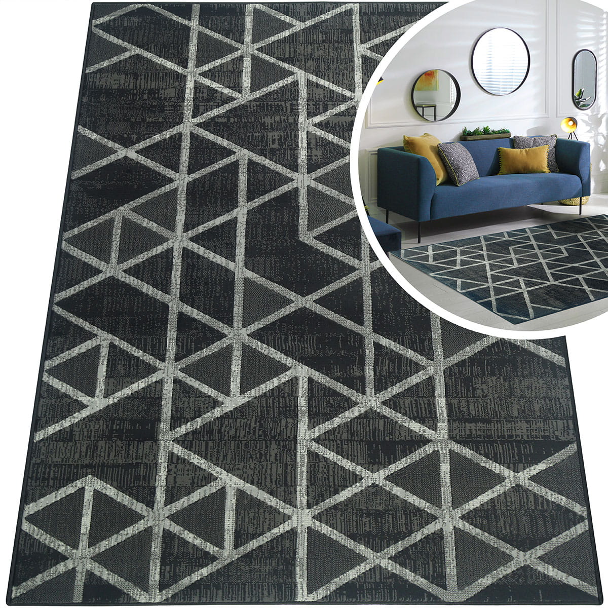 CZARNY DYWAN DO SALONU VENEZIA - SZARY DYWAN DO PRZEDPOKOJU (704421 89922), 120x170 cm