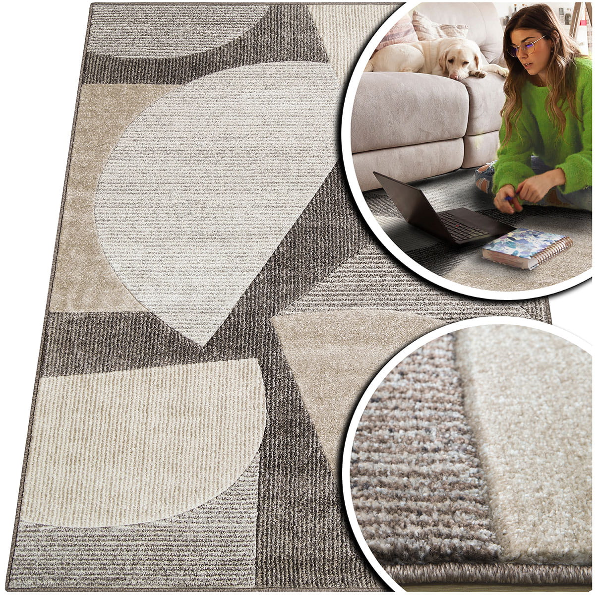 Geometryczne, stonowane kolorystycznie wzory dywanu doskonale podkreślą styl i dodadzą charakteru Państwa mieszkaniu. Jednocześnie, dzięki zróżnicowanym tonacjom barw, dywan umiejętnie: