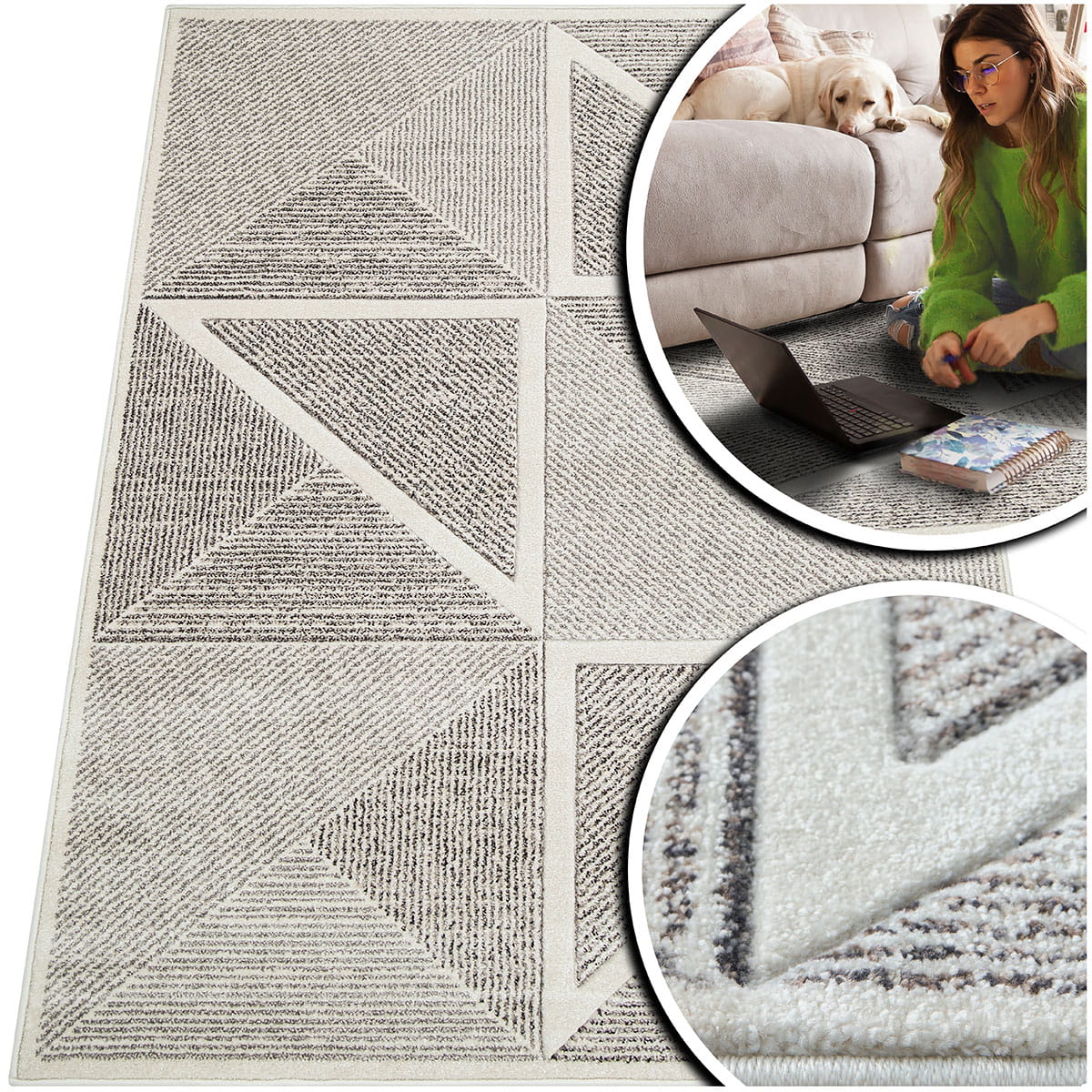 Geometryczne, stonowane kolorystycznie wzory dywanu doskonale podkreślą styl i dodadzą charakteru Państwa mieszkaniu. Jednocześnie, dzięki zróżnicowanym tonacjom barw, dywan umiejętnie: