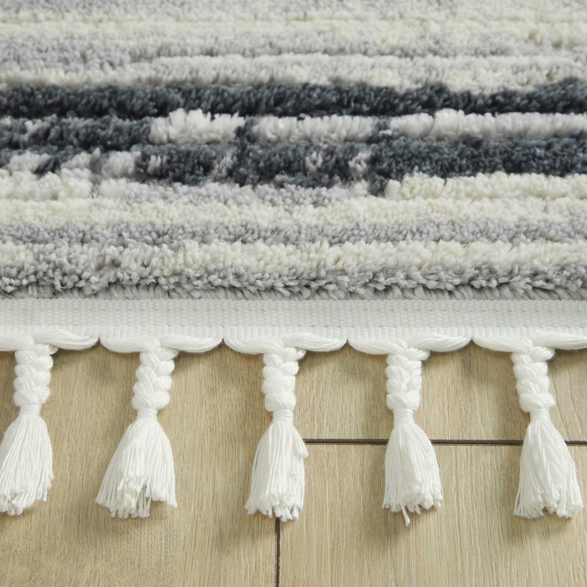Długie plecione frędzle, a także różna wysokość runa tworząca efekt trójwymiaru 3d podkreślą styl i nada charakter Państwa mieszkaniu. Jednocześnie, dzięki stonowanym tonacjom kolorów, głównie szarości, beżu, kremu czy też domieszek czerni: