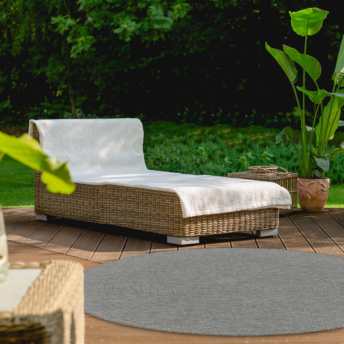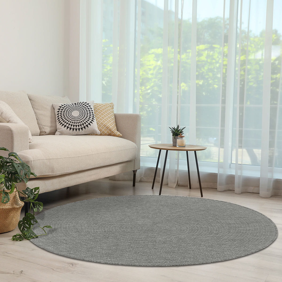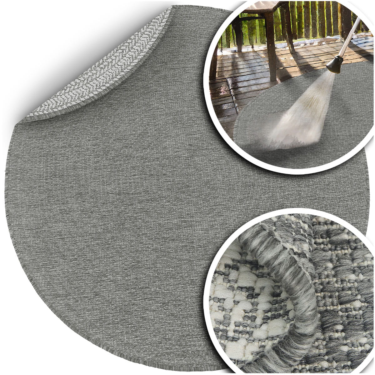 DYWAN ZEWNĘTRZNY NA TARAS DYWAN NA BALKON DYWAN DO KUCHNI - Lana (205607 10010 Silver - koło), 160x160 cm