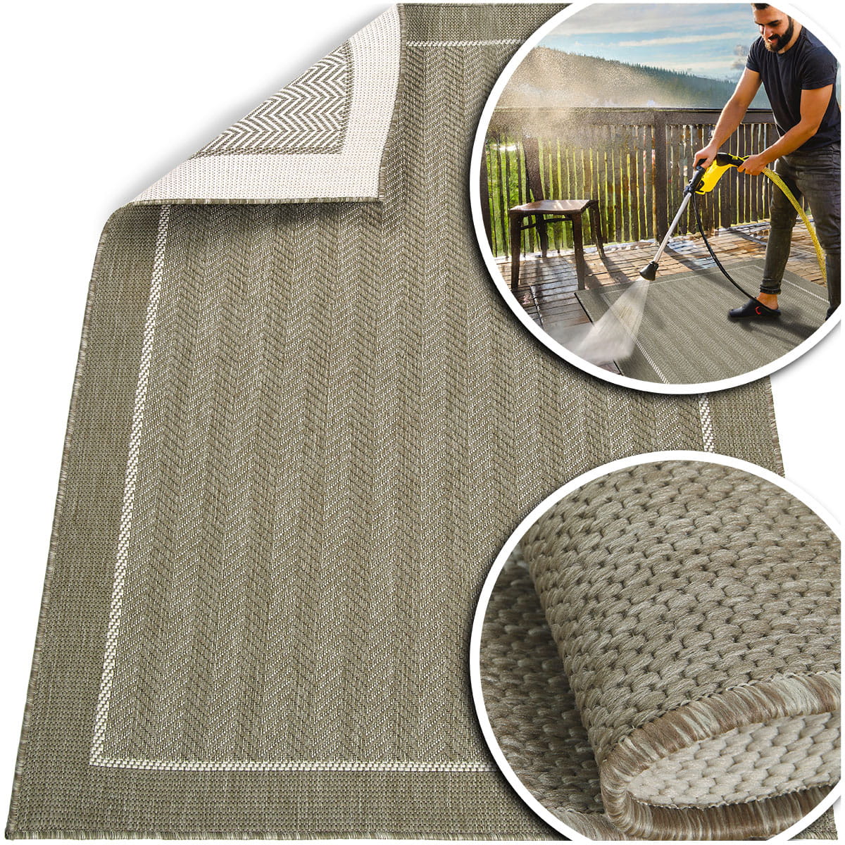 Główną zaletą tego typu dywanów jest to, iż można je wykorzystać na zewnątrz i wewnątrz oraz możliwość zastosowania ich w dwóch wersjach kolorystycznych ponieważ są to dywany dwustronne.