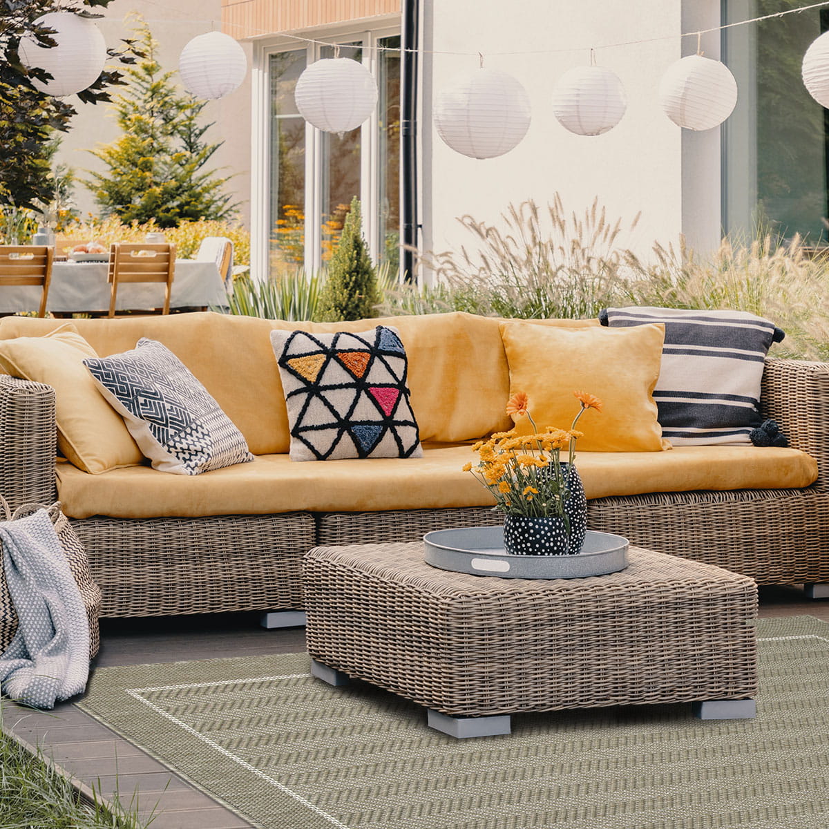 Kolekcja przeznaczona również do stosowania na zewnątrz. Umieszczając ten dywan na tarasie lub balkonie, dodasz przytulności do przestrzeni i zapewnisz miękką powierzchnię do chodzenia a także zabezpieczysz podłogę przed uszkodzeniami. Kolecja ta świetnie sprawdzi się także w kuchni.
