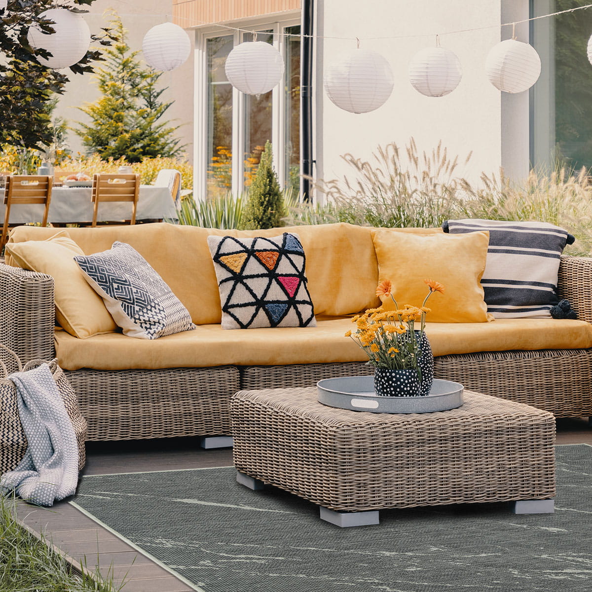 Kolekcja przeznaczona również do stosowania na zewnątrz. Umieszczając ten dywan na tarasie lub balkonie, dodasz przytulności do przestrzeni i zapewnisz miękką powierzchnię do chodzenia a także zabezpieczysz podłogę przed uszkodzeniami. Kolecja ta świetnie sprawdzi się także w kuchni.