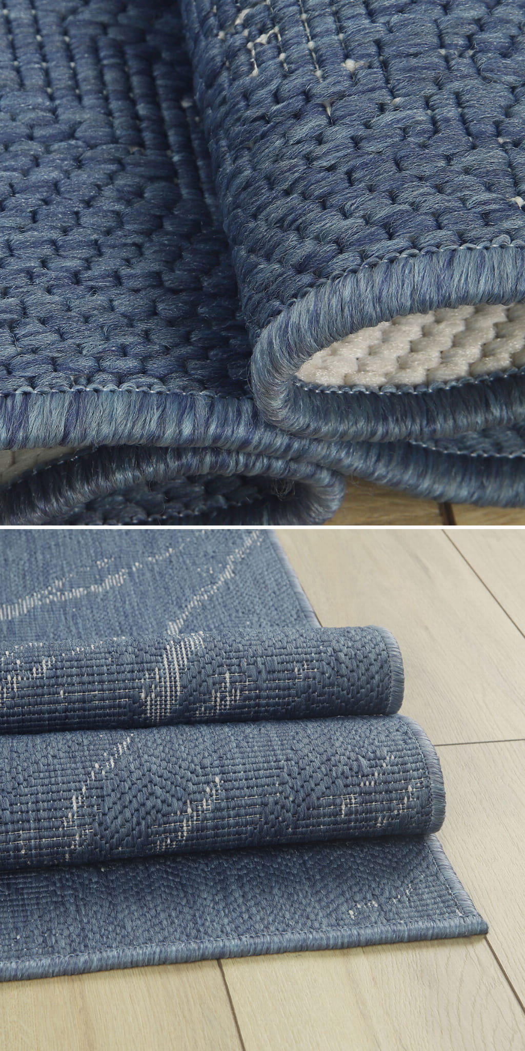 Główną zaletą tego typu dywanów jest to, iż można je wykorzystać na zewnątrz i wewnątrz oraz możliwość zastosowania ich w dwóch wersjach kolorystycznych ponieważ są to dywany dwustronne.