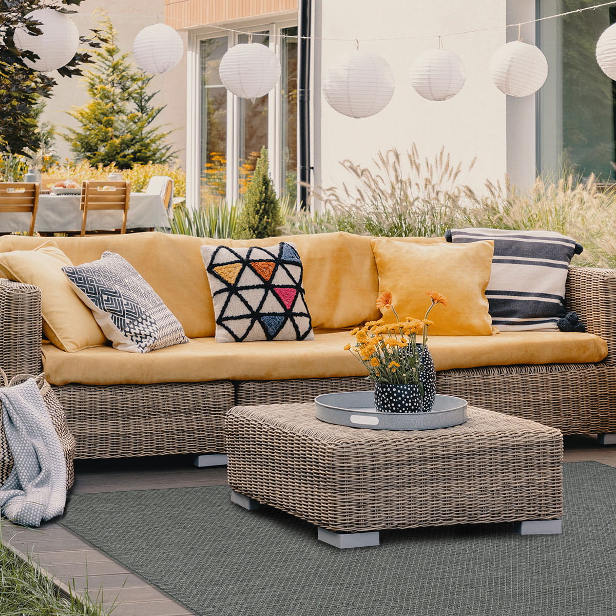 Kolekcja przeznaczona również do stosowania na zewnątrz. Umieszczając ten dywan na tarasie lub balkonie, dodasz przytulności do przestrzeni i zapewnisz miękką powierzchnię do chodzenia a także zabezpieczysz podłogę przed uszkodzeniami. Kolecja ta świetnie sprawdzi się także w kuchni.