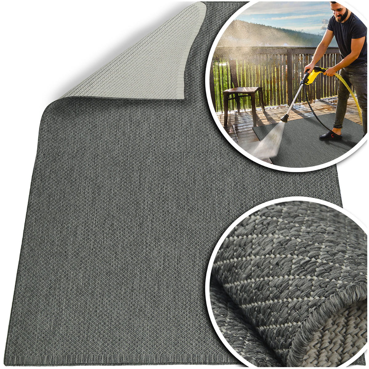 Główną zaletą tego typu dywanów jest to, iż można je wykorzystać na zewnątrz i wewnątrz oraz możliwość zastosowania ich w dwóch wersjach kolorystycznych ponieważ są to dywany dwustronne.