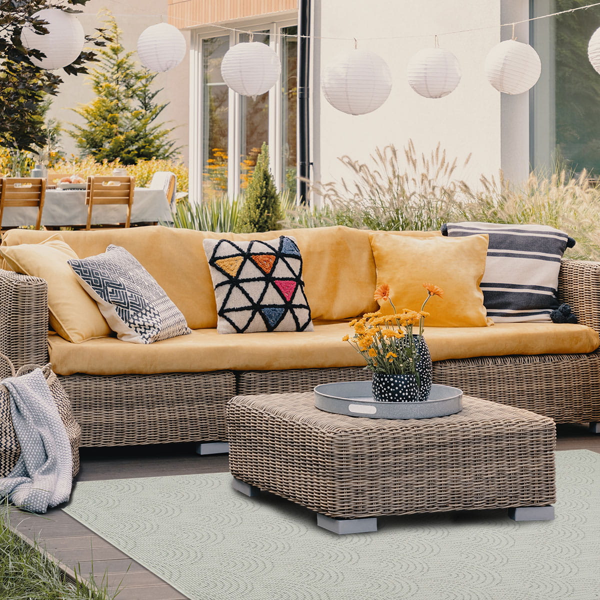 Kolekcja przeznaczona również do stosowania na zewnątrz. Umieszczając ten dywan na tarasie lub balkonie, dodasz przytulności do przestrzeni i zapewnisz miękką powierzchnię do chodzenia a także zabezpieczysz podłogę przed uszkodzeniami. Kolecja ta świetnie sprawdzi się także w kuchni.