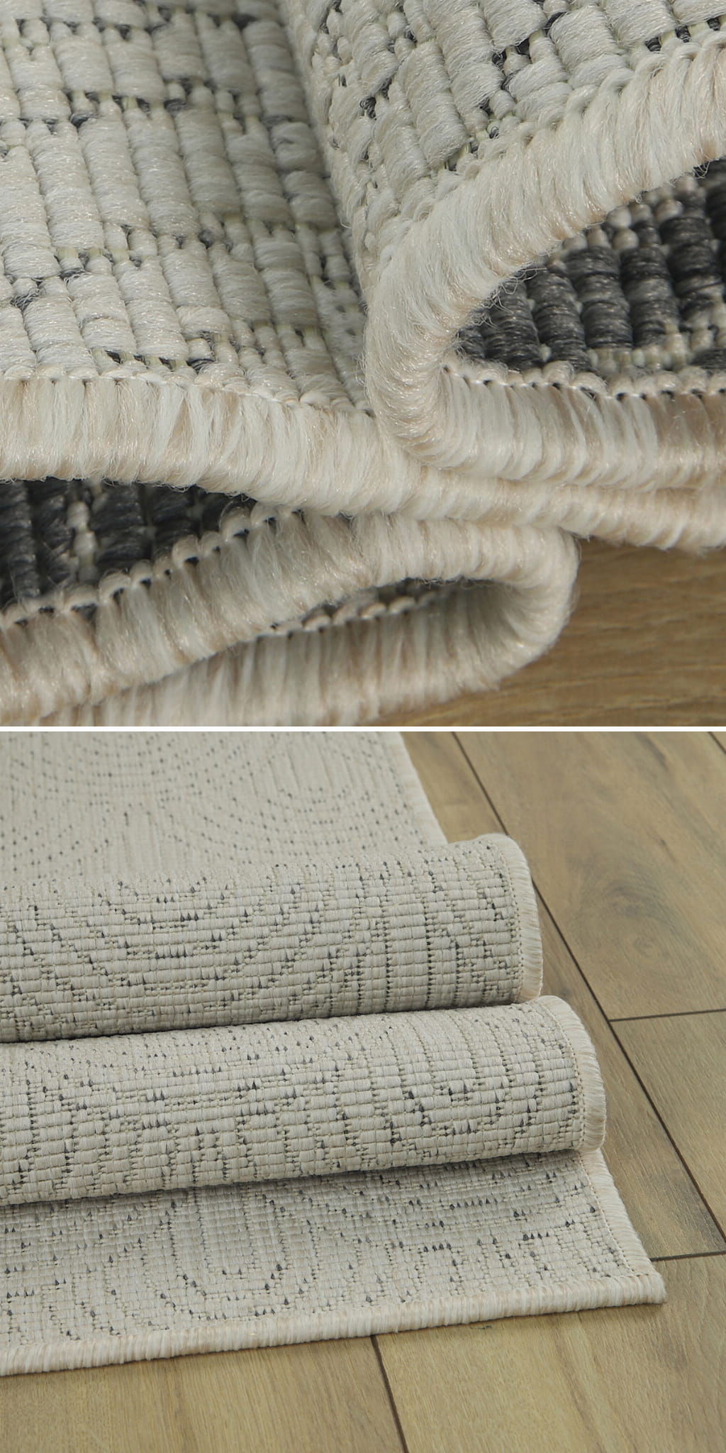 Główną zaletą tego typu dywanów jest to, iż można je wykorzystać na zewnątrz i wewnątrz oraz możliwość zastosowania ich w dwóch wersjach kolorystycznych ponieważ są to dywany dwustronne.