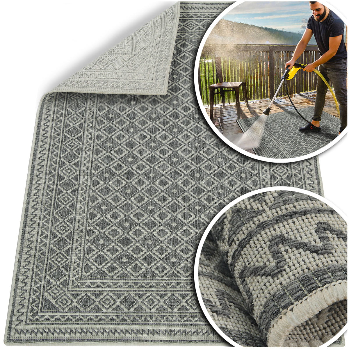Główną zaletą tego typu dywanów jest to, iż można je wykorzystać na zewnątrz i wewnątrz oraz możliwość zastosowania ich w dwóch wersjach kolorystycznych ponieważ są to dywany dwustronne.