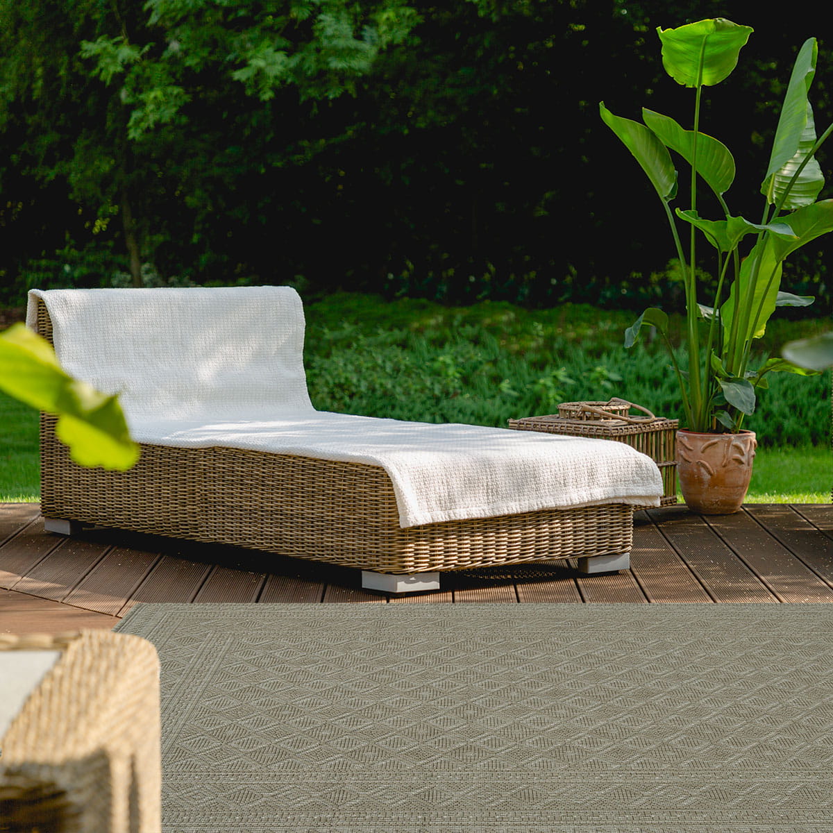 Kolekcja przeznaczona również do stosowania na zewnątrz. Umieszczając ten dywan na tarasie lub balkonie, dodasz przytulności do przestrzeni i zapewnisz miękką powierzchnię do chodzenia a także zabezpieczysz podłogę przed uszkodzeniami. Kolecja ta świetnie sprawdzi się także w kuchni.