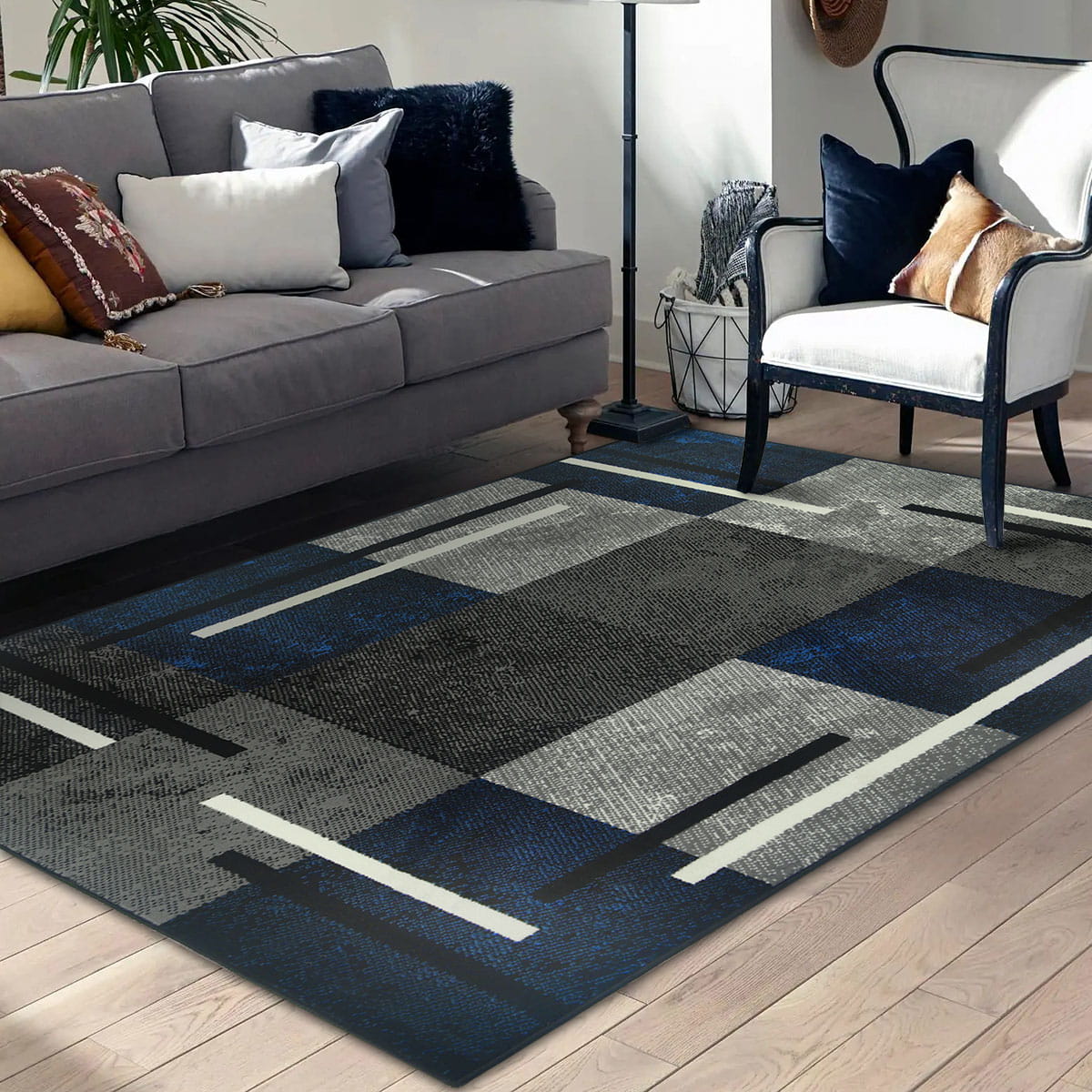 GRANATOWY DYWAN DO SALONU VENEZIA - CZARNY SZARY DYWAN DO PRZEDPOKOJU (703132 94945), 200x290 cm