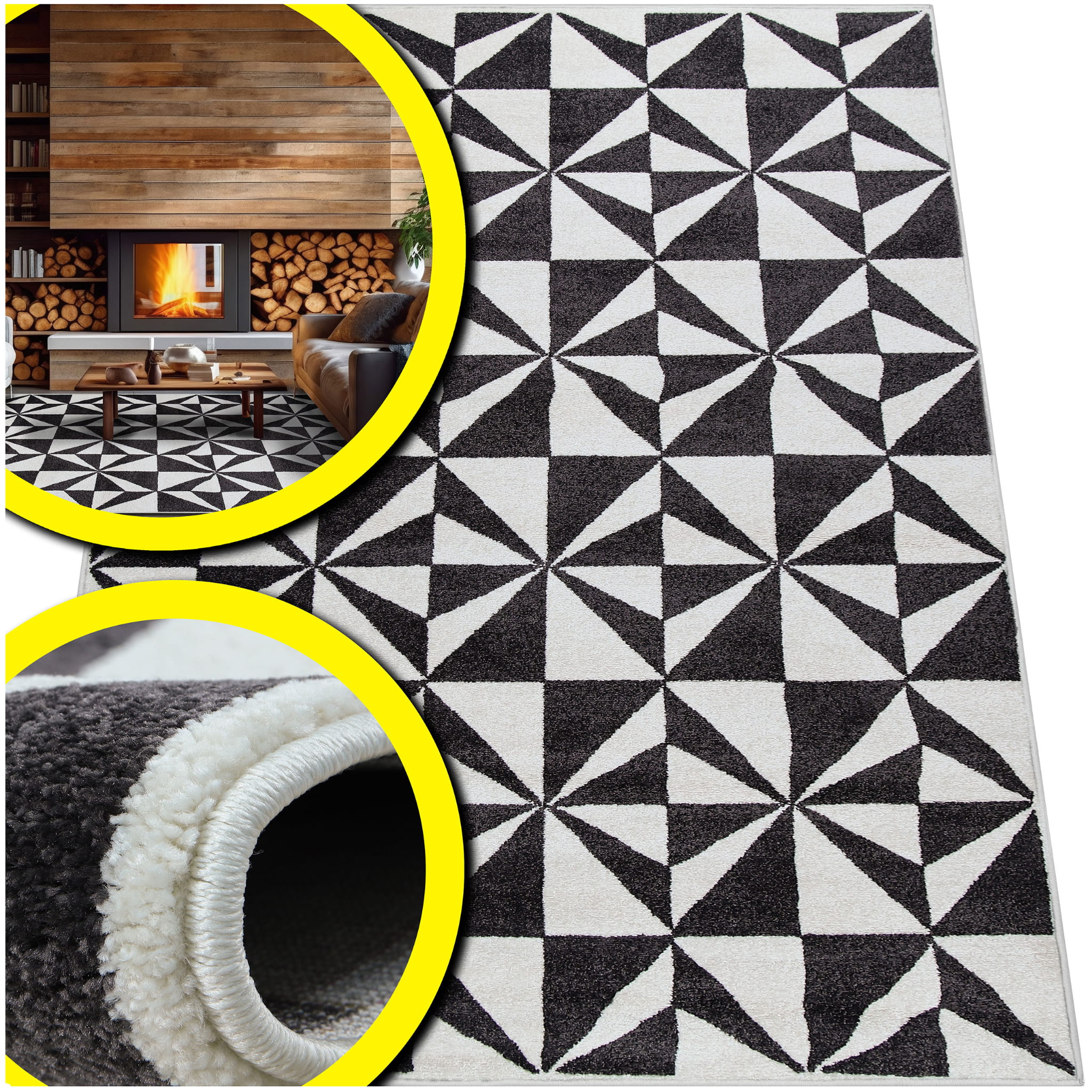 GRUBY CZARNO-BIAŁY 2x3m DYWAN DO SALONU - NOWOCZESNY DYWAN DO POKOJU - ADVENTURE (85991-16843), 200x300 cm