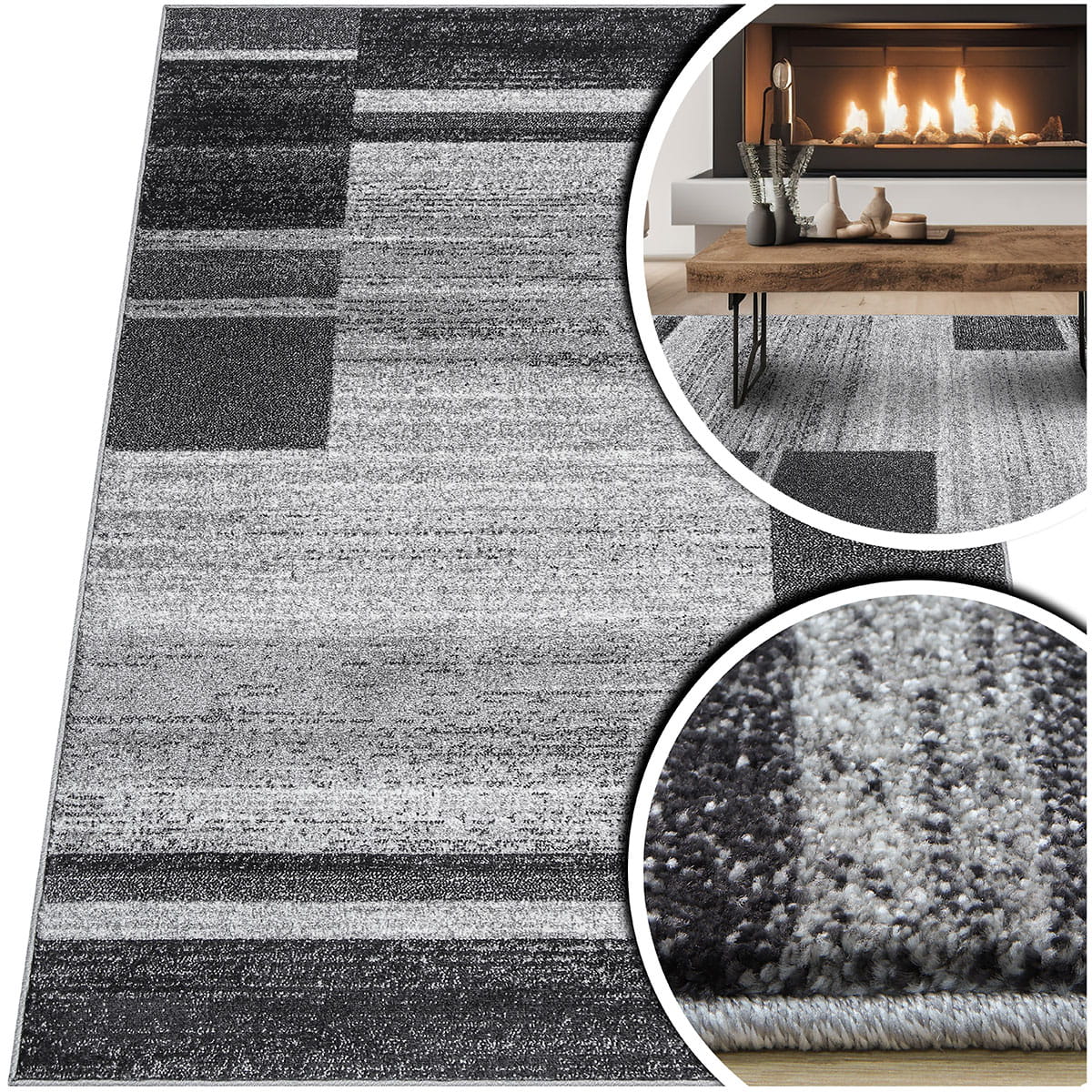 GRUBY CZARNY DYWAN DO SALONU - NOWOCZESNY DYWAN DO POKOJU - ADVENTURE (16051-18411), 150x300 cm