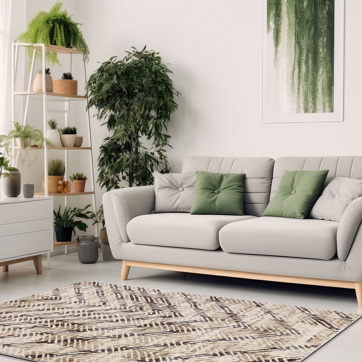 Geometryczne, stonowane kolorystycznie wzory dywanu doskonale podkreślą styl i dodadzą charakteru Państwa mieszkaniu. Jednocześnie, dzięki zróżnicowanym tonacjom barw, dywan umiejętnie: