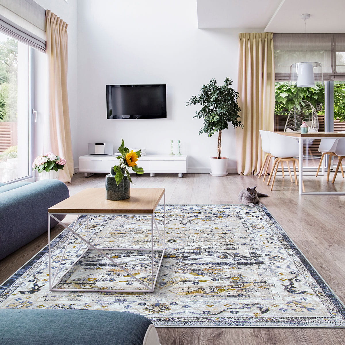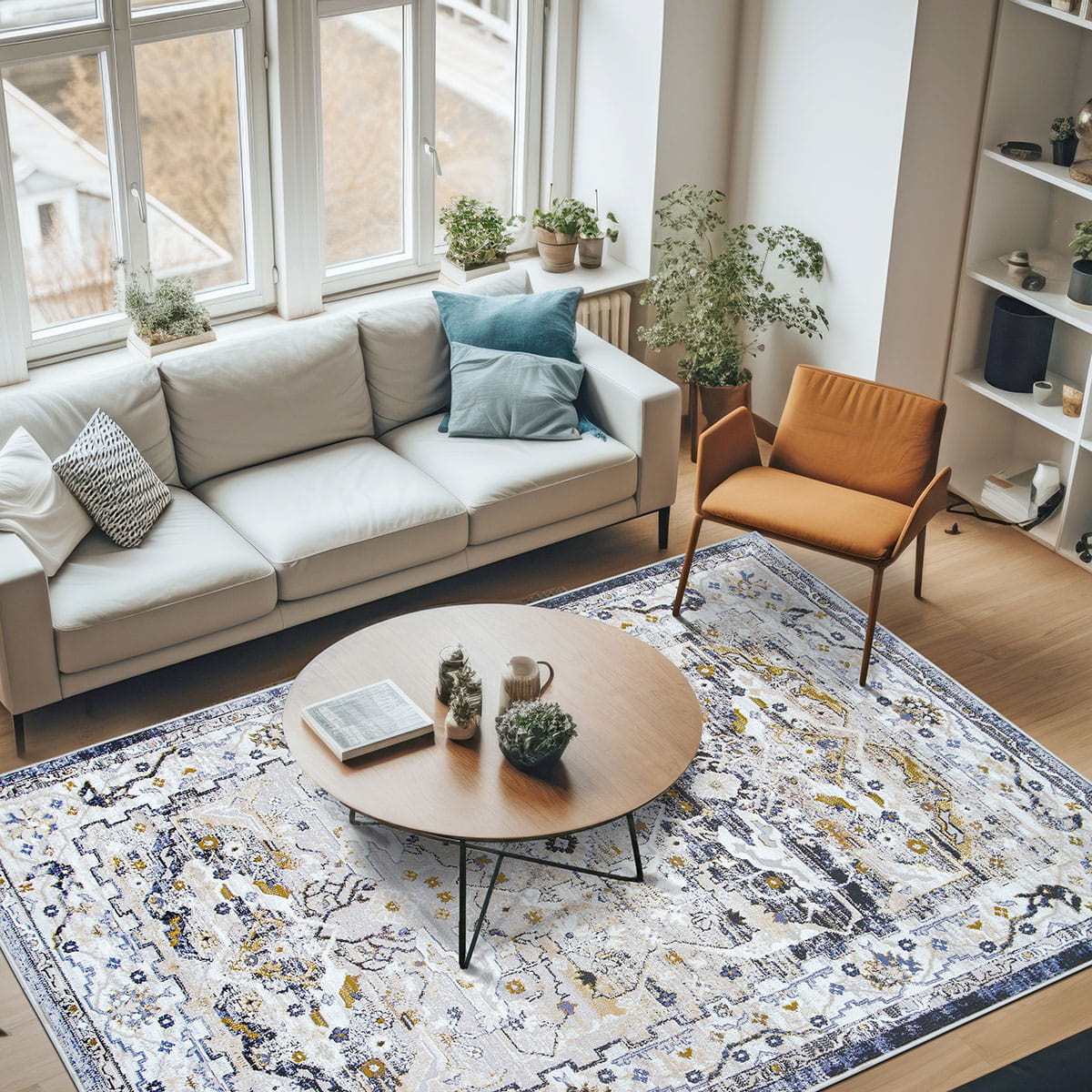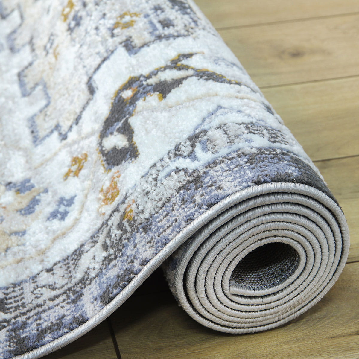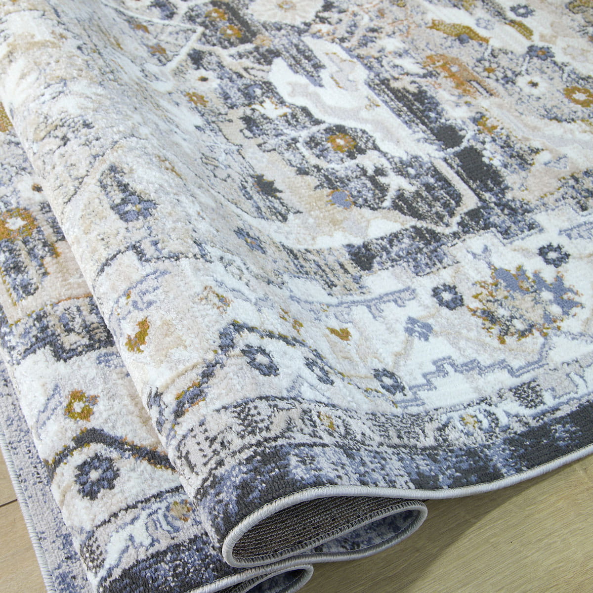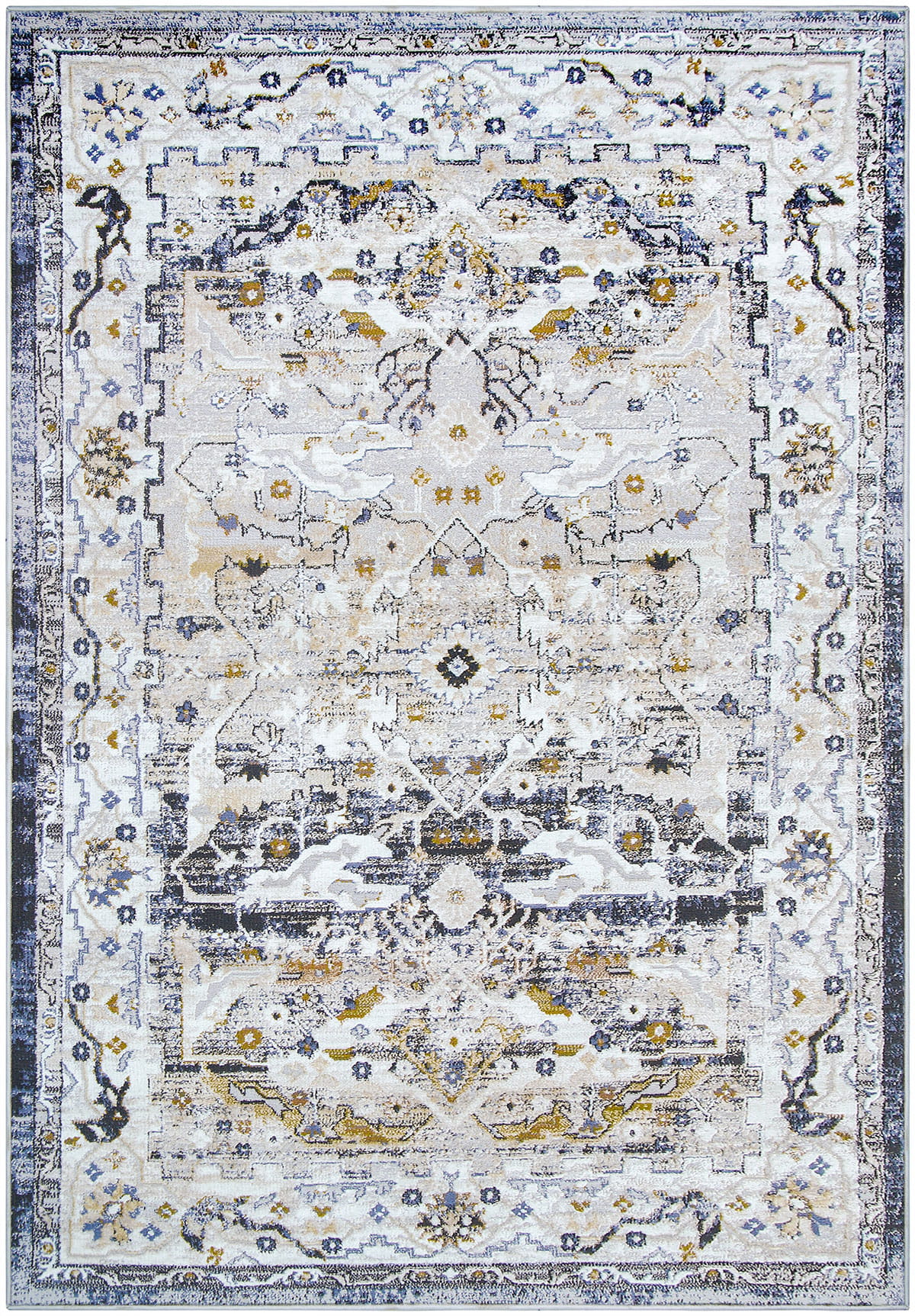 KLASYCZNY DYWAN DO SALONU - SZARY GRANATOWY DYWAN DO PRZEDPOKOJU - DYWAN LOFT- (Laila 2186A ivory/ d.copper), 160x230 cm