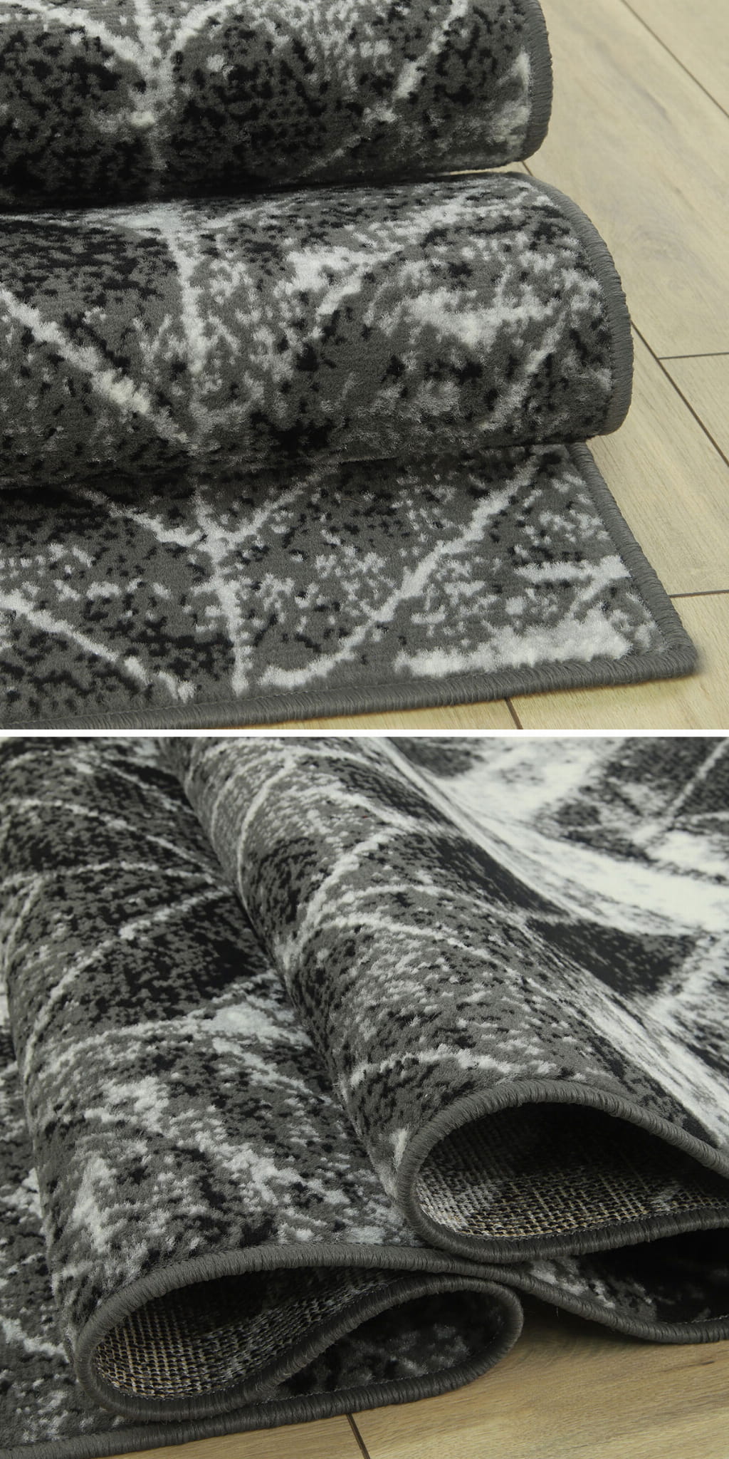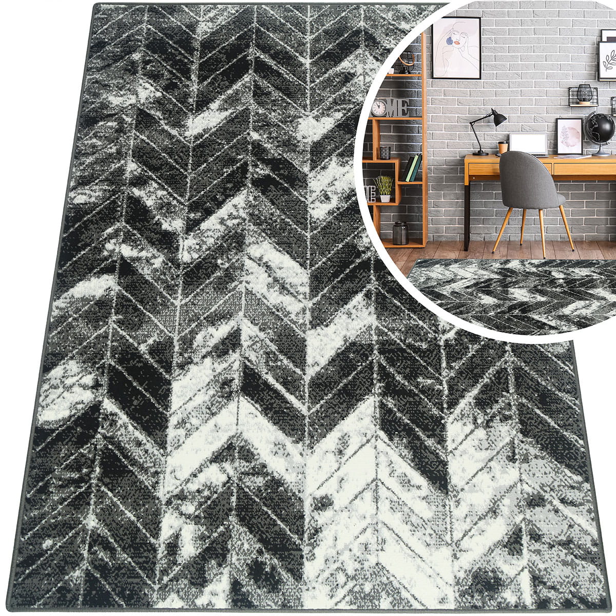 MODNE DYWANY DO SALONU - SZARY DYWAN DO SALONU - CZARNY DYWAN DO POKOJU (Grafica Fir Szary), 120x170 cm
