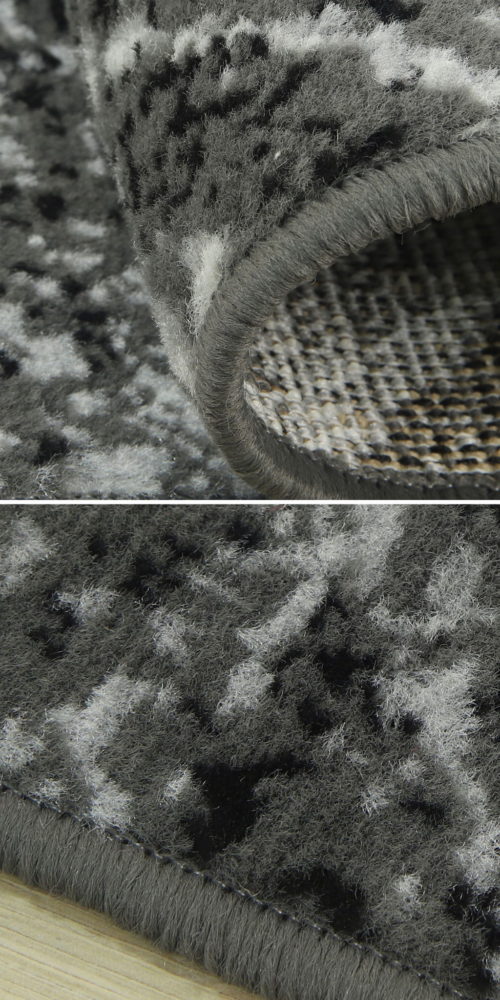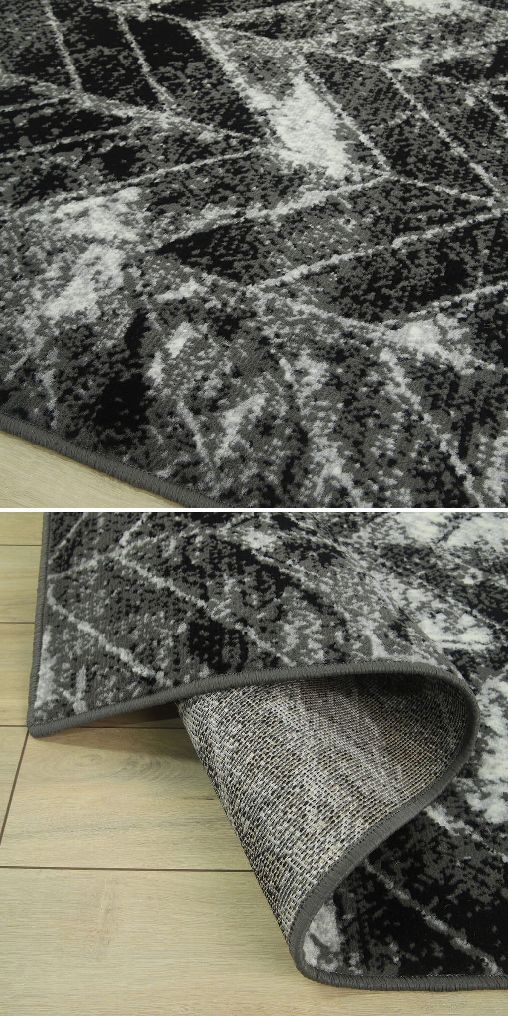 Abstrakcyjny wzór dywanu z KOLEKCJI GRAFICA oraz zróżnicowana tonacja szarości z domieszką czerni i bieli, umiejętnie podkreśli styl i nada charakter Państwa mieszkaniu.