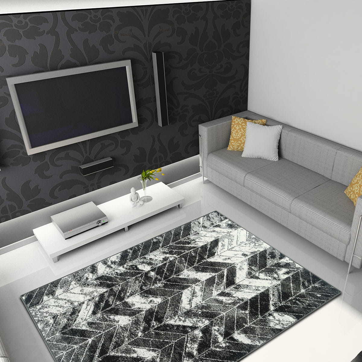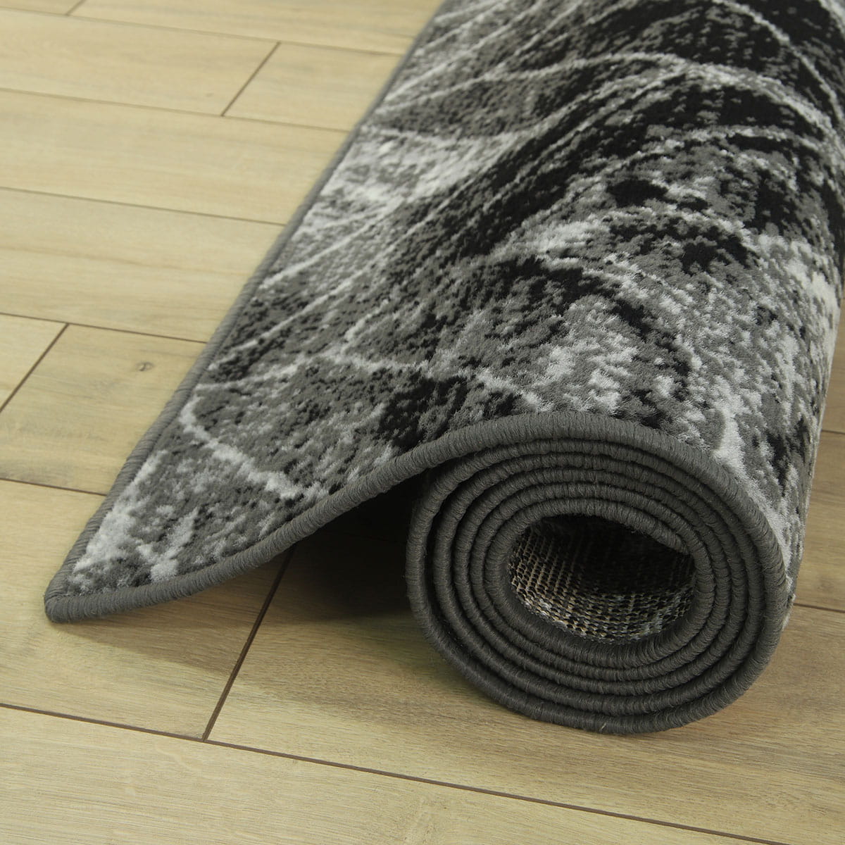 MODNE DYWANY DO SALONU - SZARY DYWAN DO SALONU - CZARNY DYWAN DO POKOJU (Grafica Fir Szary), 160x220 cm