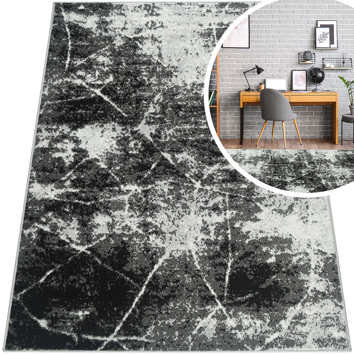 MODNE DYWANY DO SALONU - SZARY DYWAN DO SALONU - CZARNY DYWAN DO POKOJU (Grafica Marmor Szary), 160x220 cm