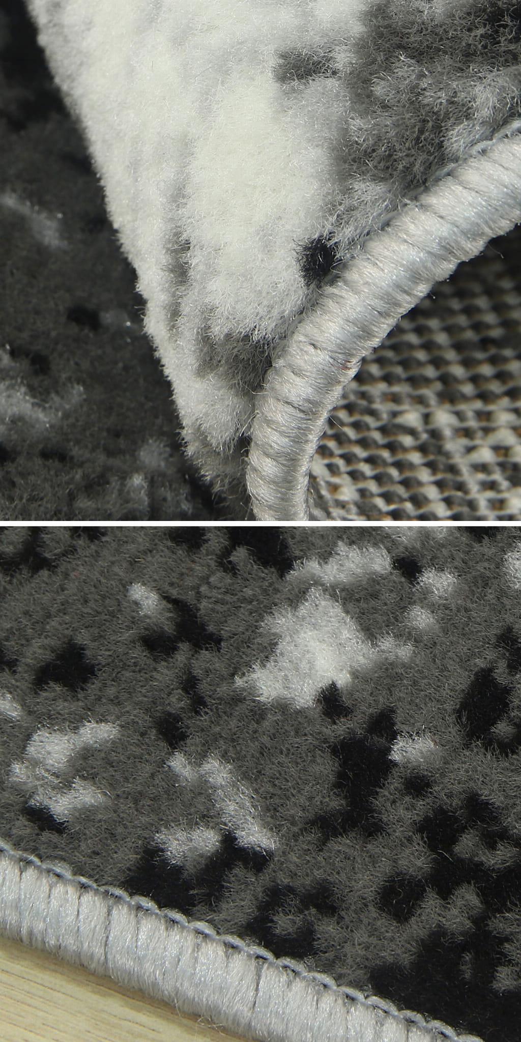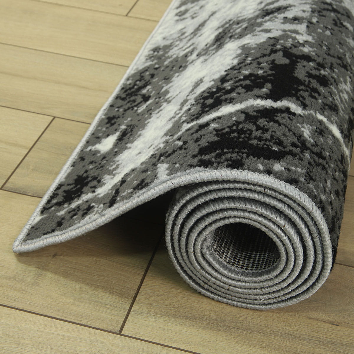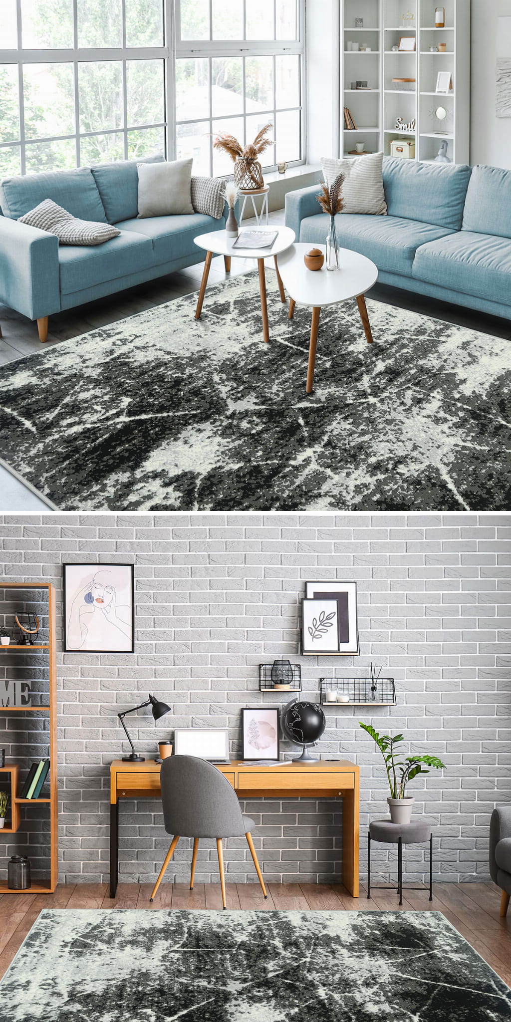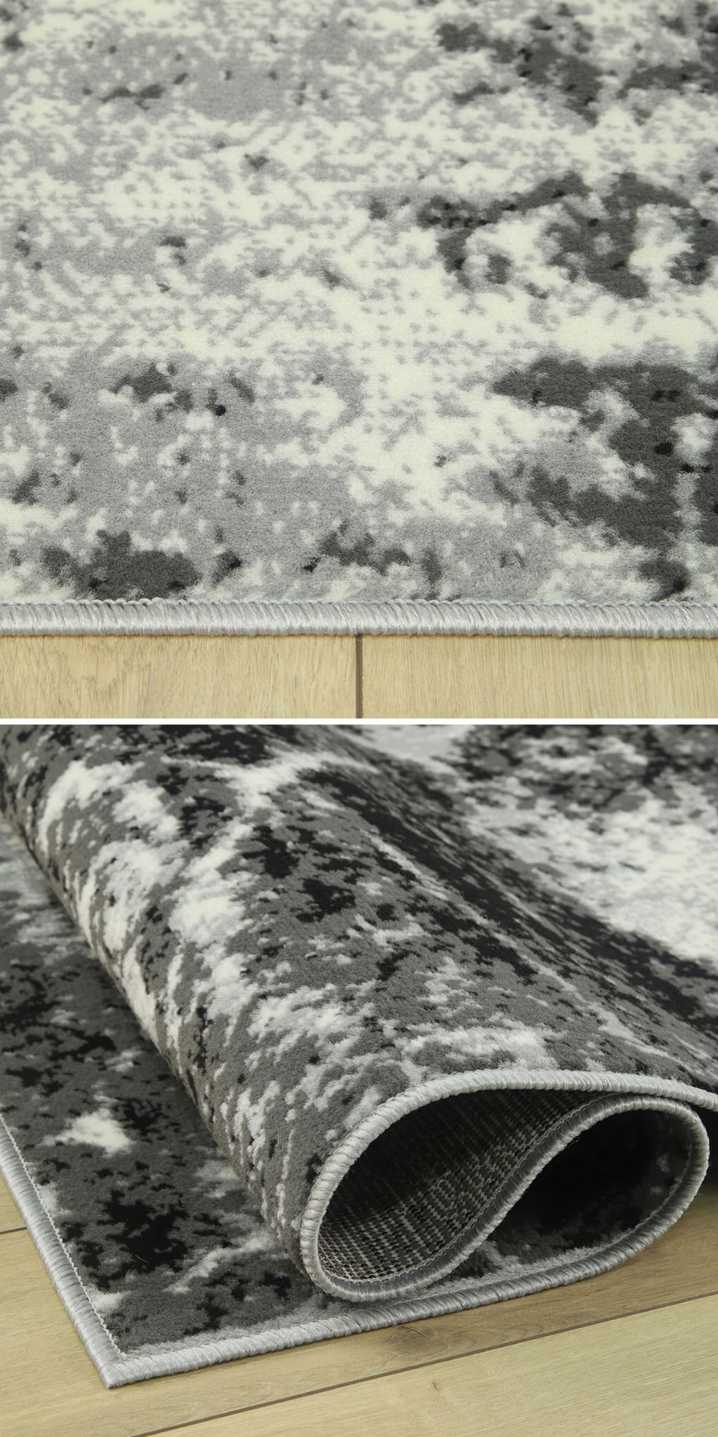 Abstrakcyjny wzór dywanu z KOLEKCJI GRAFICA oraz zróżnicowana tonacja szarości z domieszką czerni i bieli, umiejętnie podkreśli styl i nada charakter Państwa mieszkaniu.