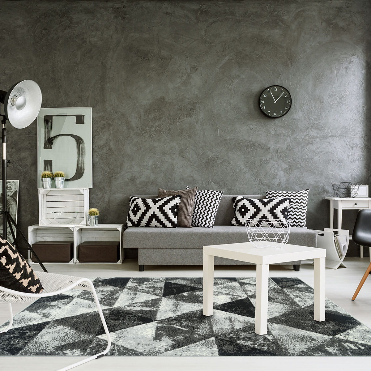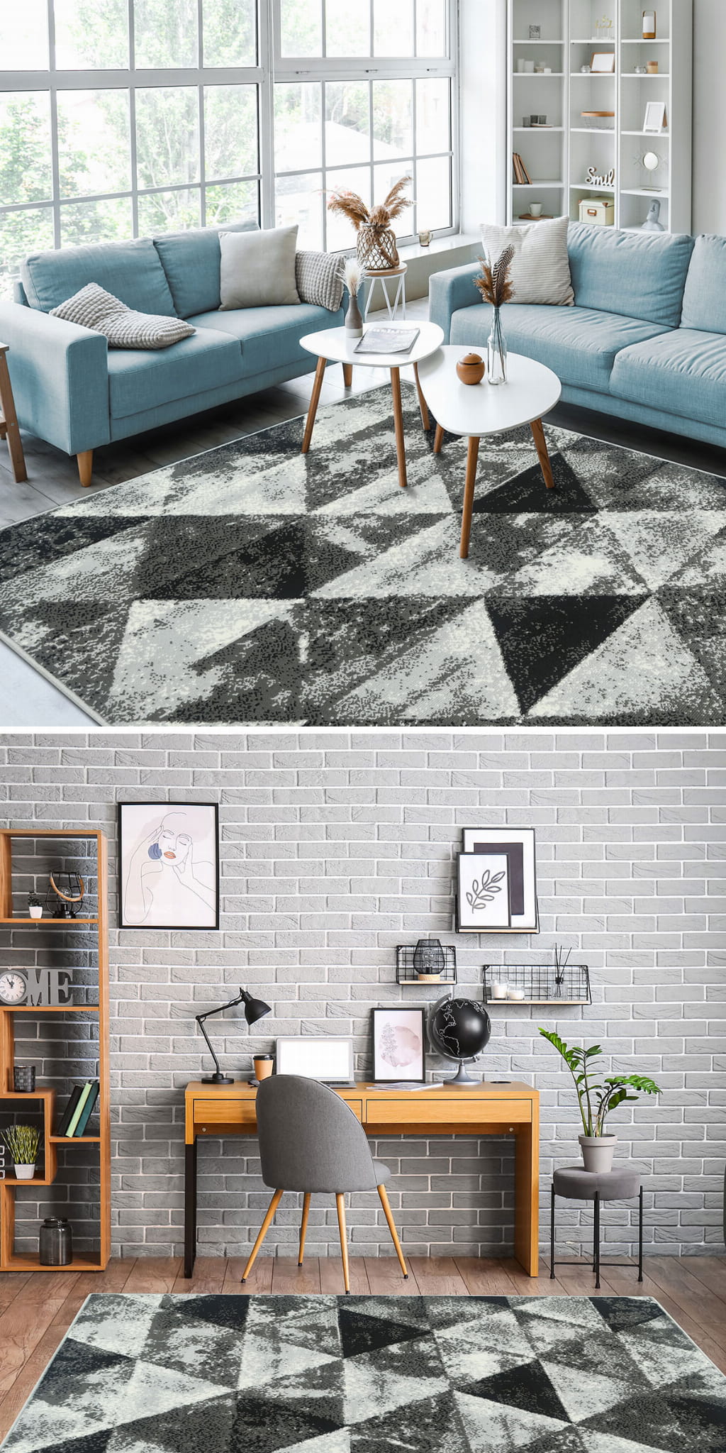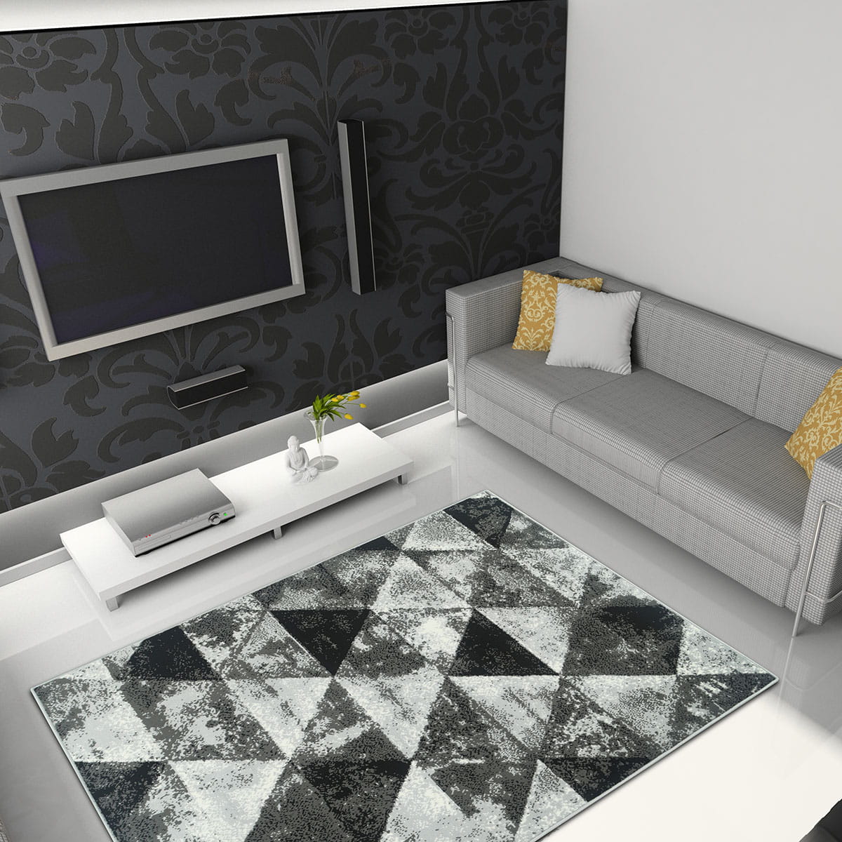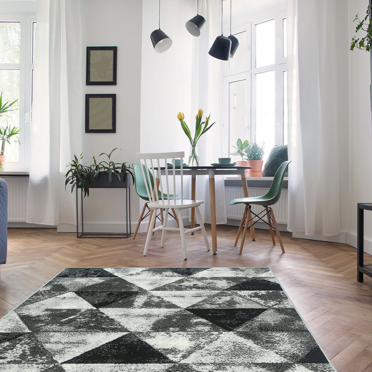 MODNE DYWANY DO SALONU - SZARY DYWAN DO SALONU - CZARNY DYWAN DO POKOJU (Grafica Triangles Szary), 160x220 cm