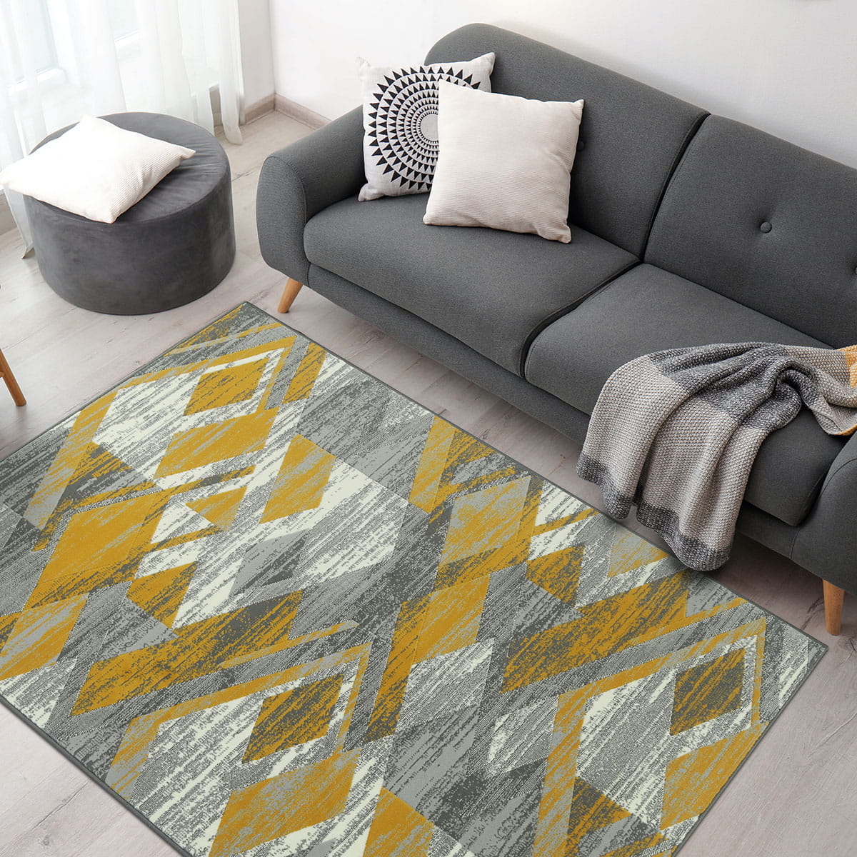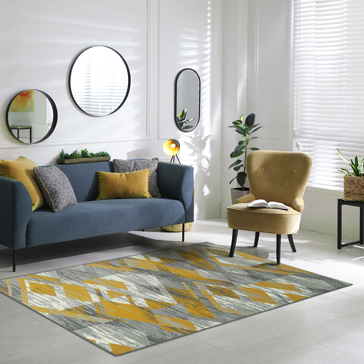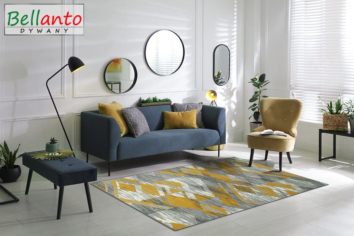 MUSZTARDOWY DYWAN DO SALONU VENEZIA - SZARY DYWAN DO PRZEDPOKOJU (704386 89915), 200x290 cm