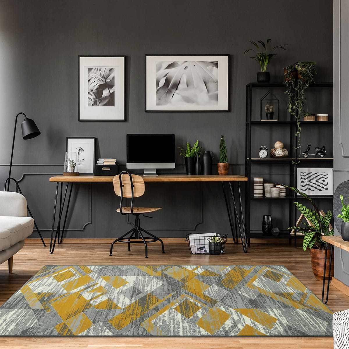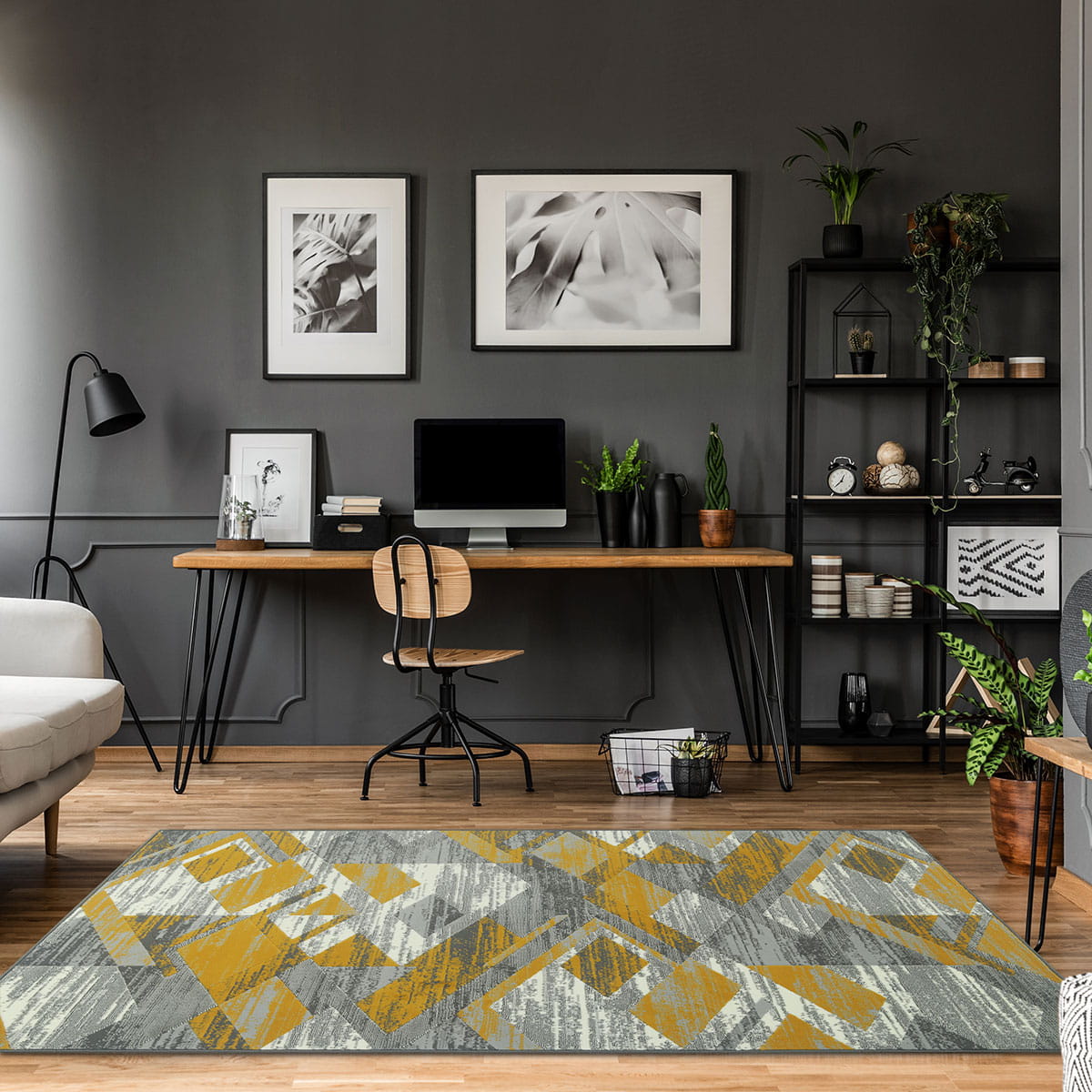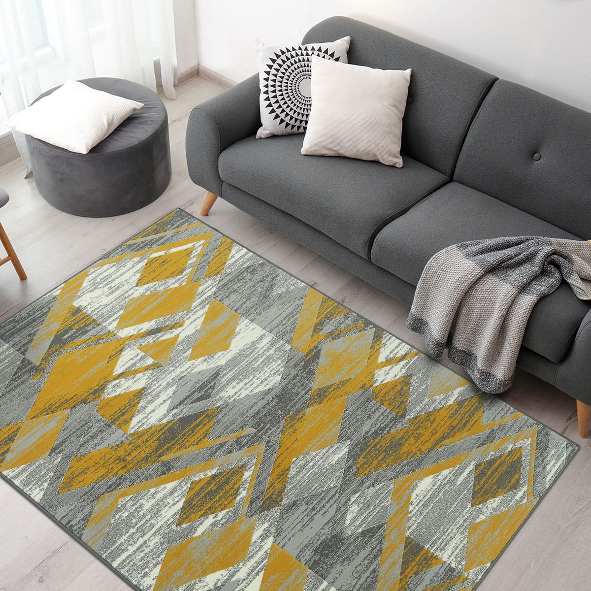MUSZTARDOWY DYWAN DO SALONU VENEZIA - SZARY DYWAN DO PRZEDPOKOJU (704386 89915), 200x290 cm