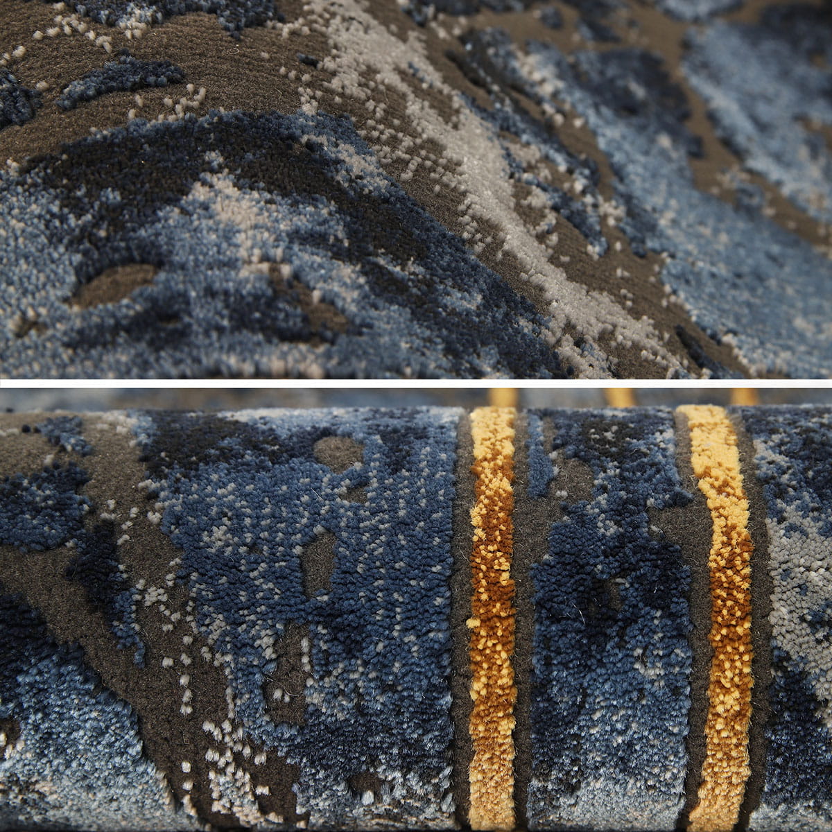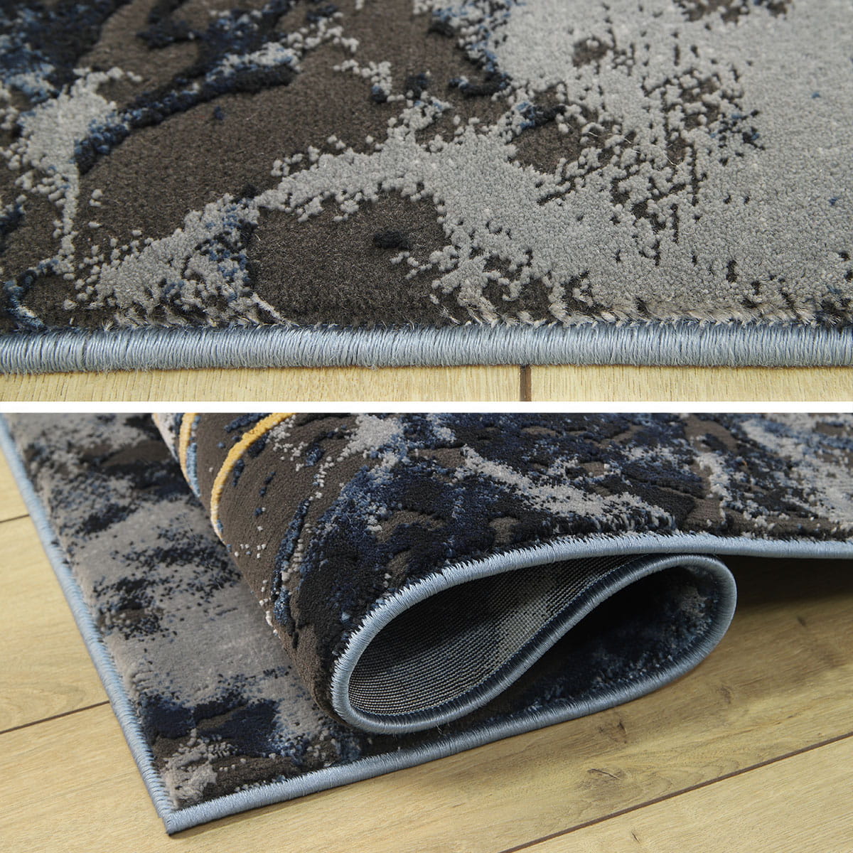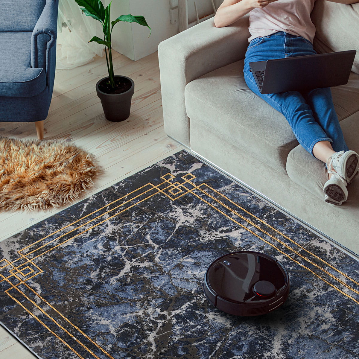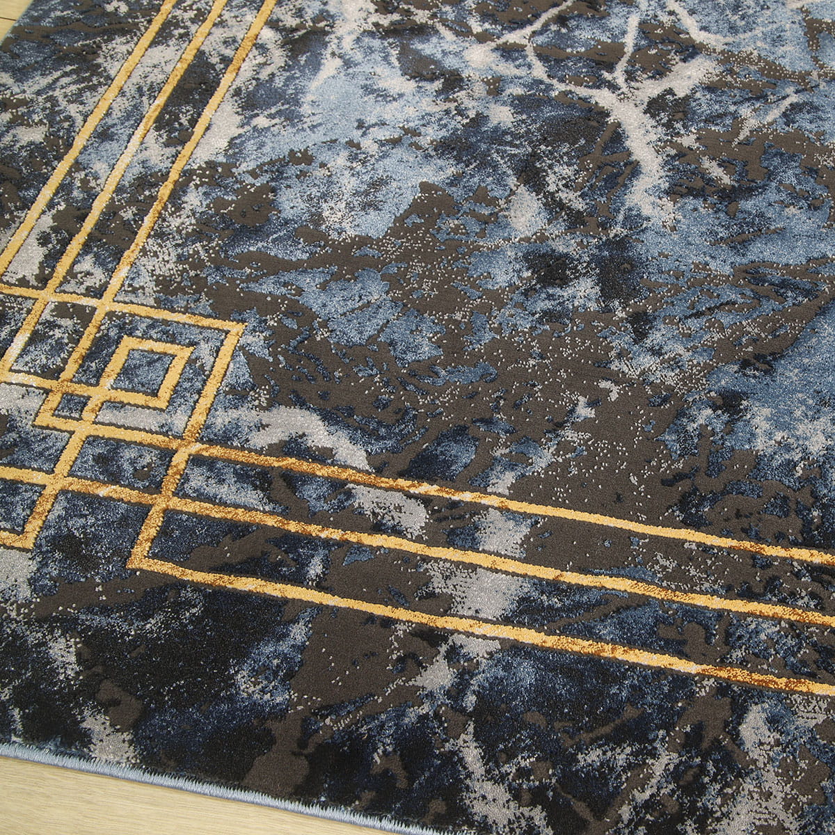 NOWOCZESNY DYWAN DO SALONU ETNA MARMUR GRANATOWY SZARY MIĘKKI ZŁOTY (BP22B blue/grey), 120x180 cm