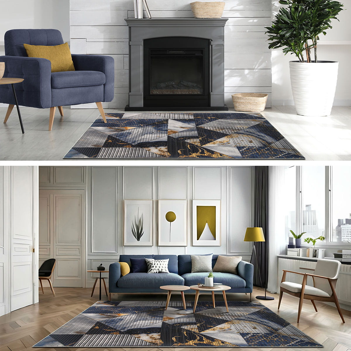 NOWOCZESNY DYWAN DO SALONU ETNA MARMUR GRANATOWY SZARY MIĘKKI ZŁOTY (BP23A grey/beige), 200x290 cm