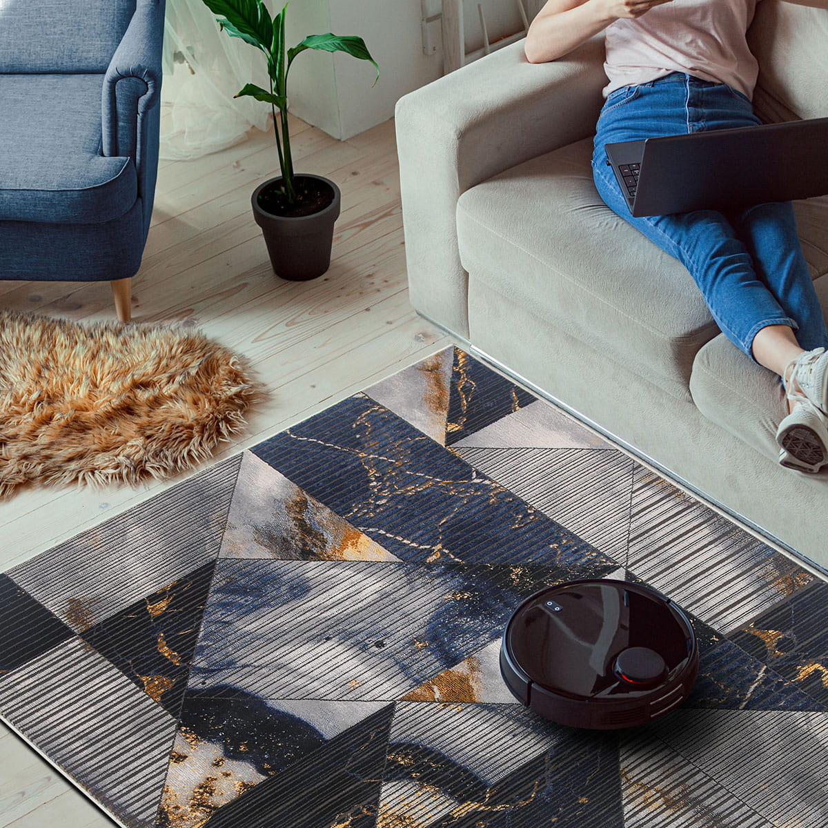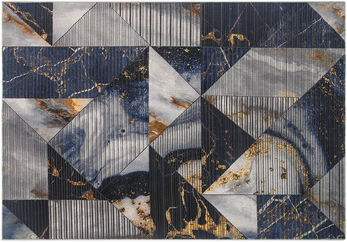 NOWOCZESNY DYWAN DO SALONU ETNA MARMUR GRANATOWY SZARY MIĘKKI ZŁOTY (BP23A grey/beige), 80x150 cm
