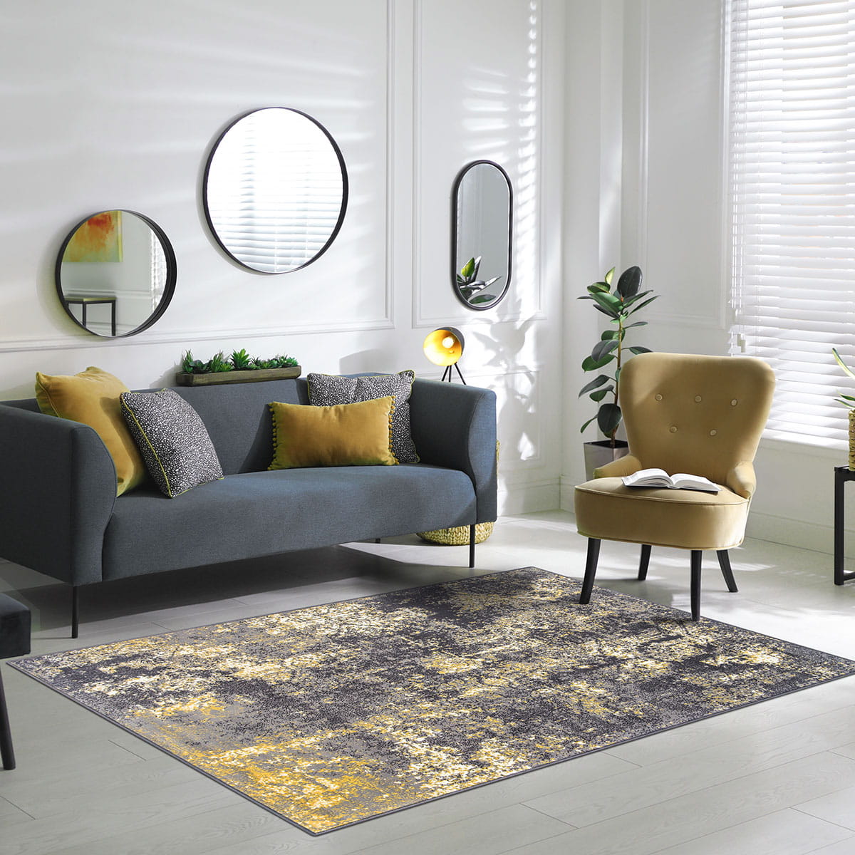 NOWOWCZESNY SZARY DYWAN DO SALONU VENEZIA MUSZTARDOWY DYWAN DO PRZEDPOKOJU POKOJU (704844 89925 dgrey mustard), 120x170 cm