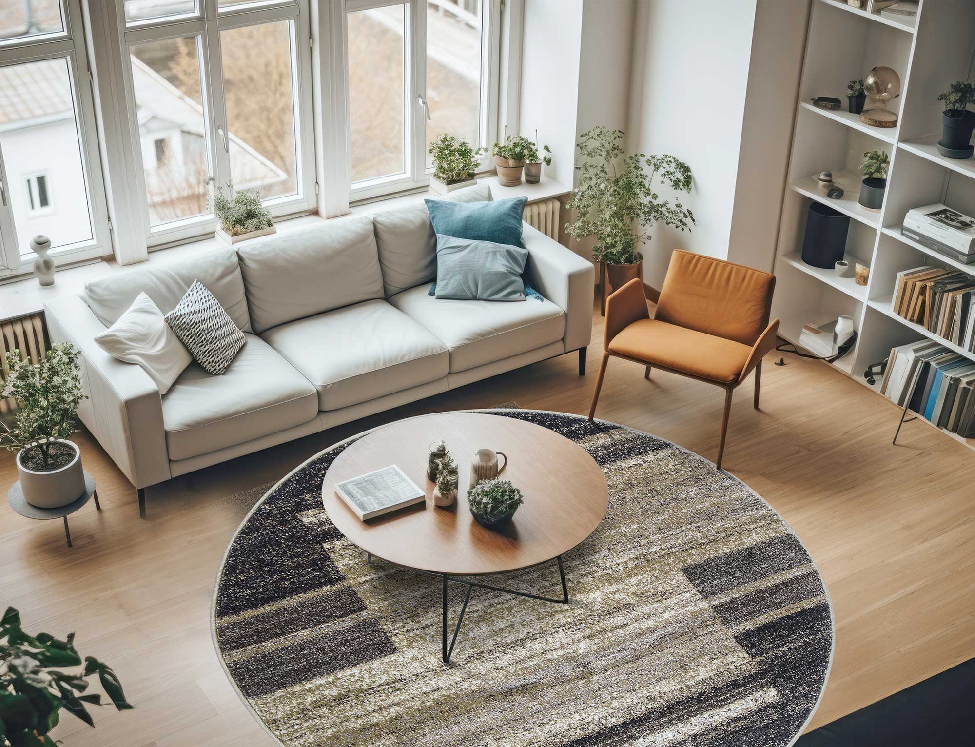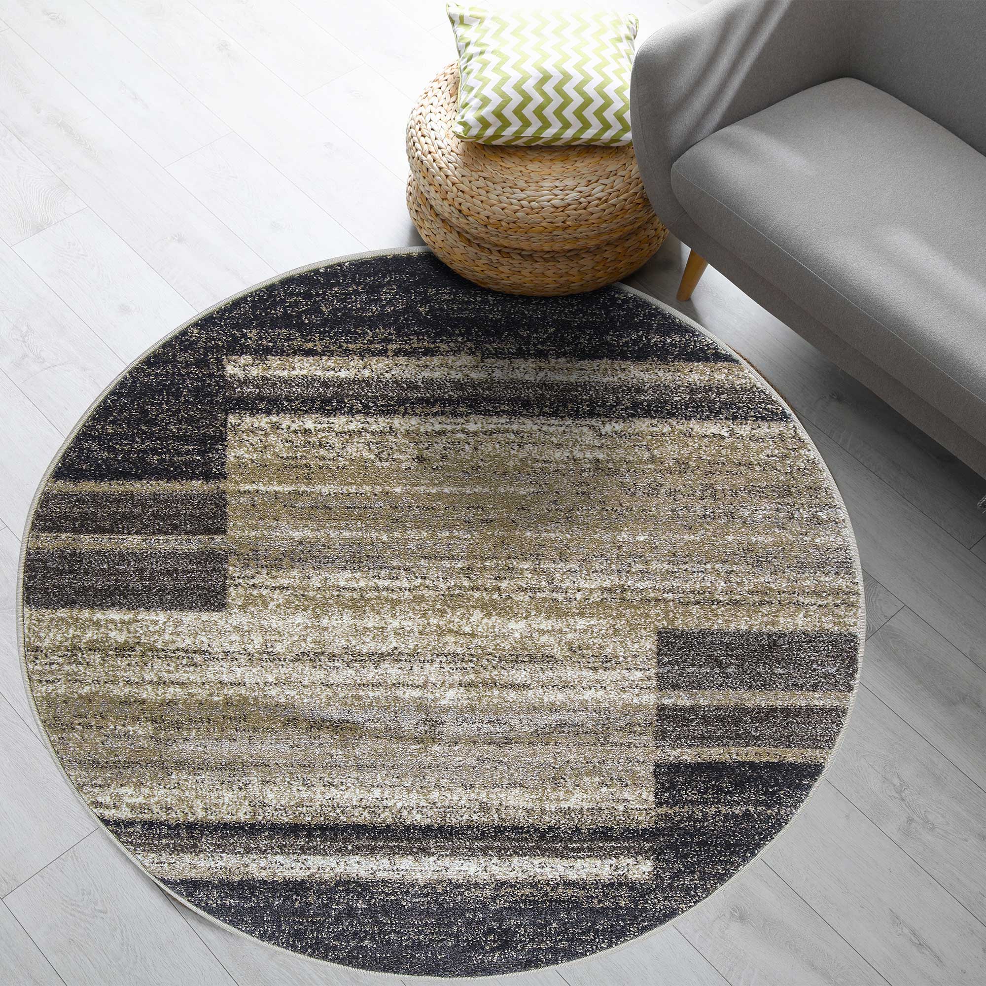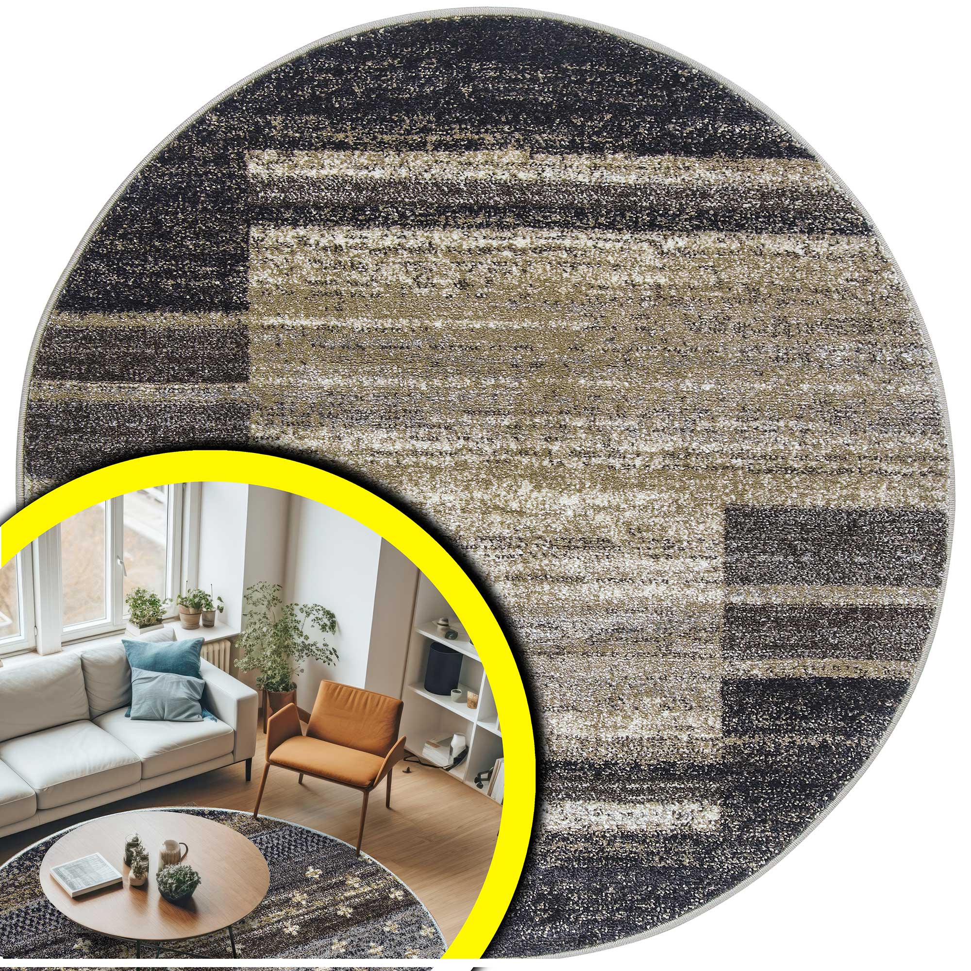 OKRĄGŁY BRĄZOWY DYWAN DO SALONU - NOWOCZESNY DYWAN DO POKOJU KOŁO - ADVENTURE (16053-18455), 120x120 cm