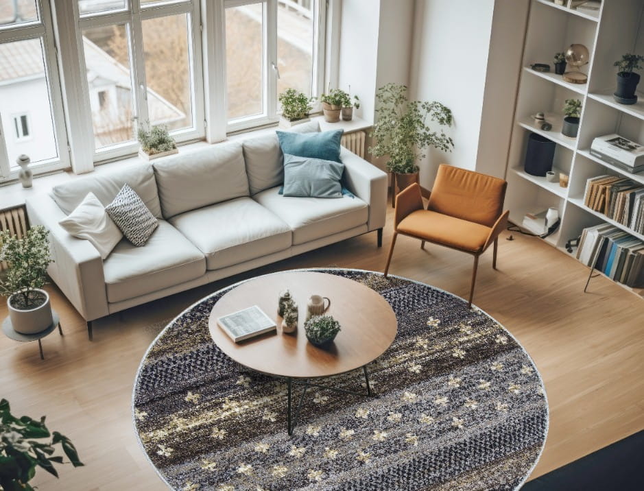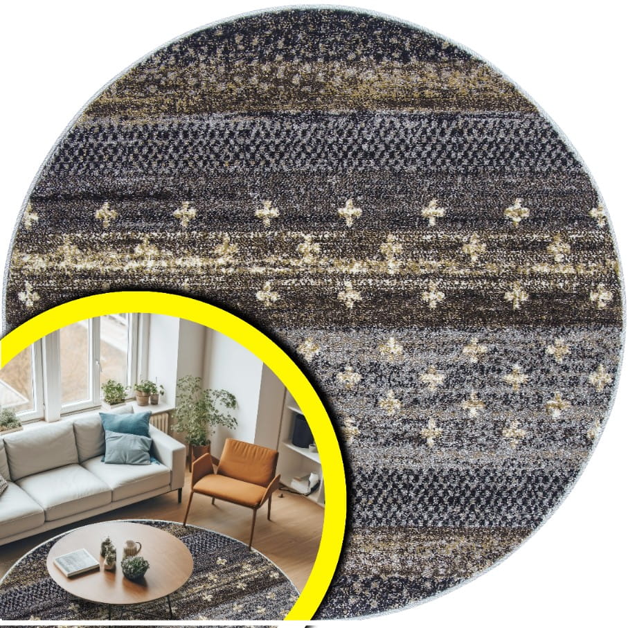 OKRĄGŁY BRĄZOWY DYWAN DO SALONU - NOWOCZESNY DYWAN DO POKOJU KOŁO - ADVENTURE (17883-18421), 120x120 cm