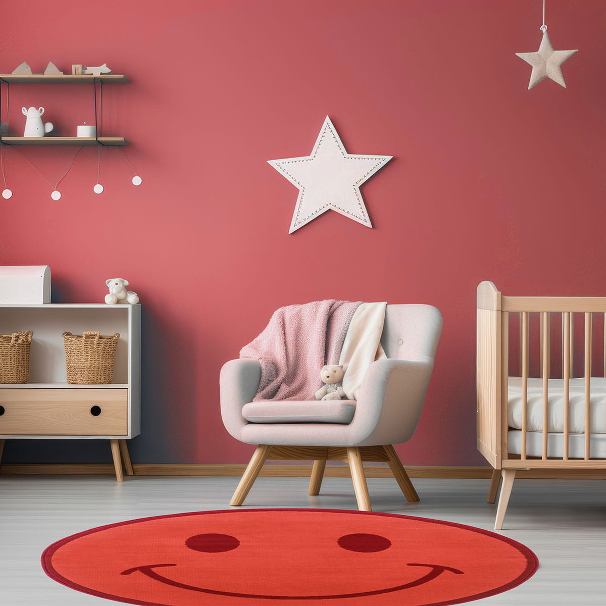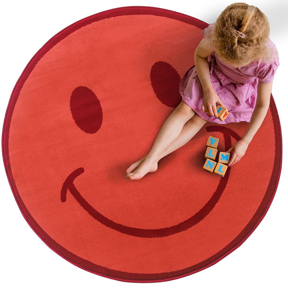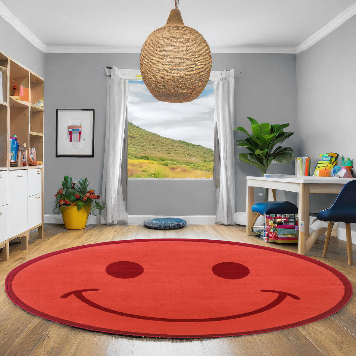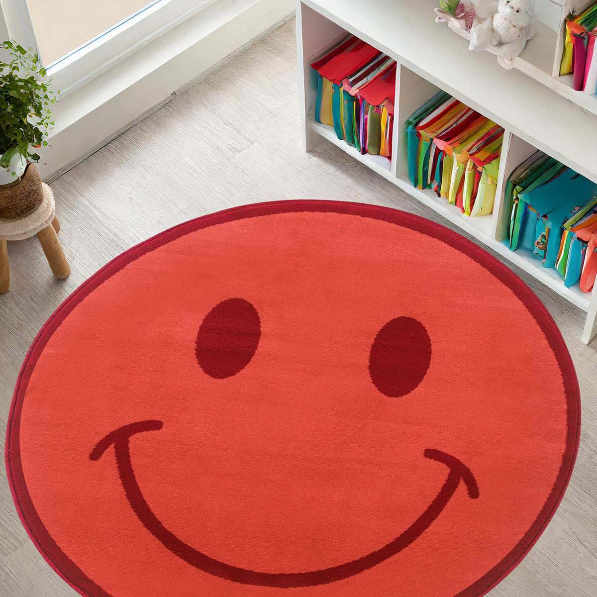 OKRĄGŁY DYWAN UŚMIECH EMOJI DZIECIĘCY DYWAN SZARY MŁODZIEŻOWY BORDOWY VENEZIA (704818 63955), 120x120 cm