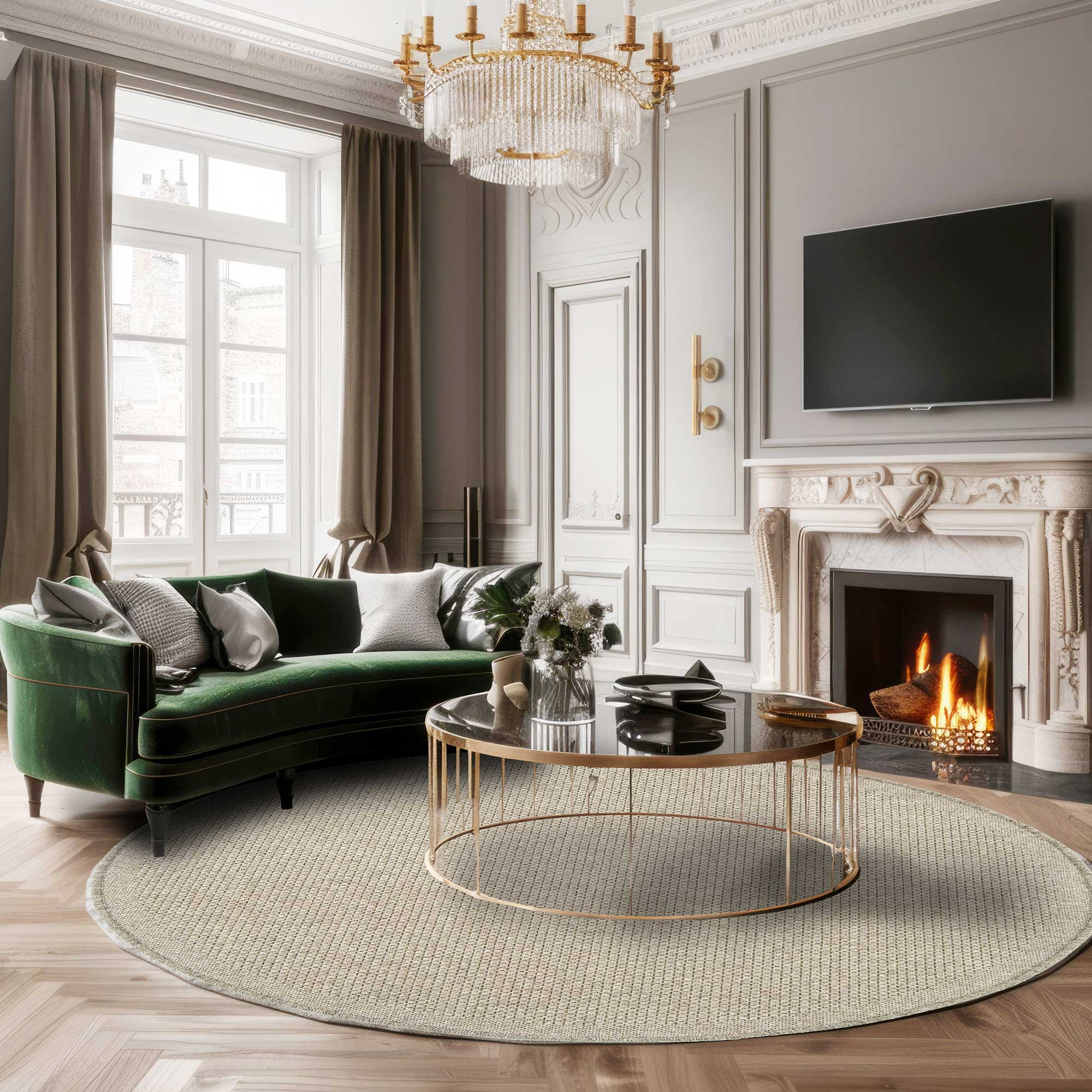 OKRĄGŁY DYWAN Z WEŁNY DO SALONU WEŁNIANY DYWANIK DO SYPIALNI (Dune 89863-69500), 160x160 cm