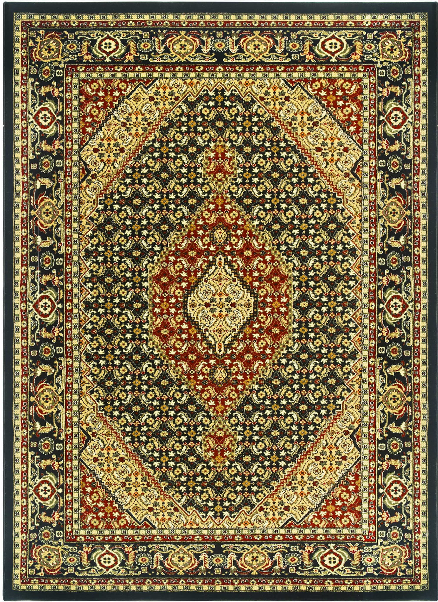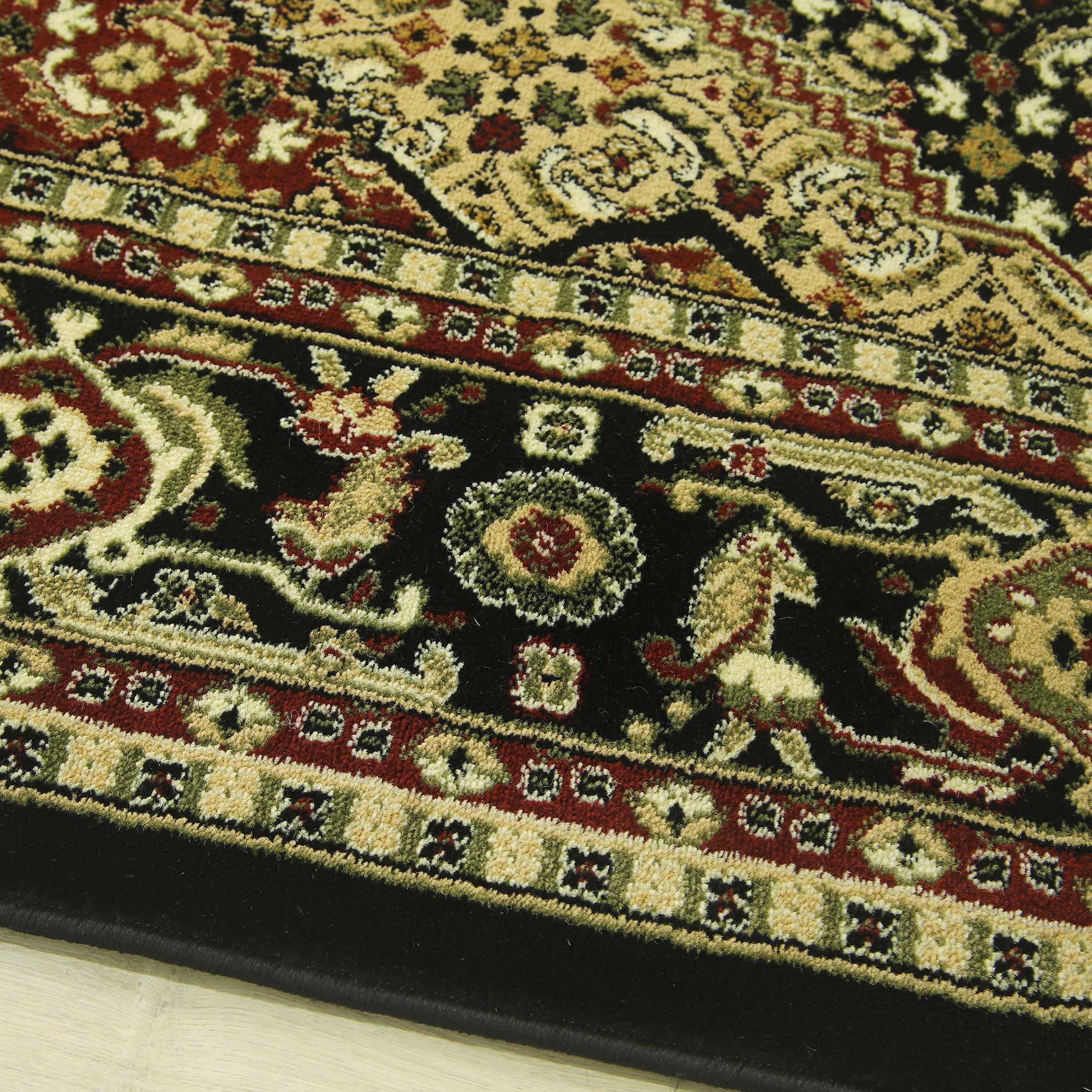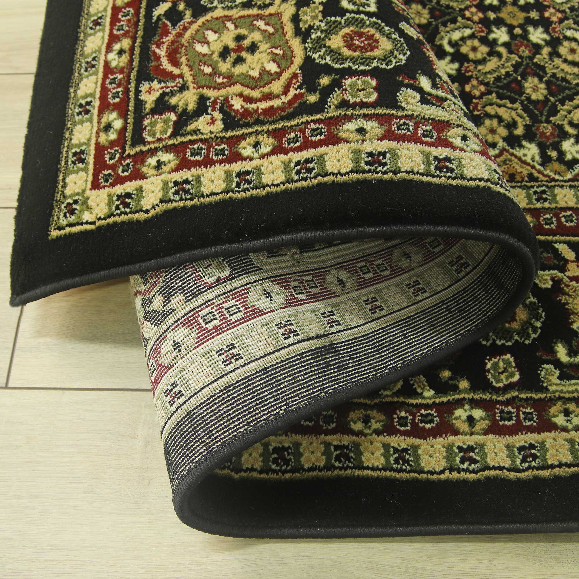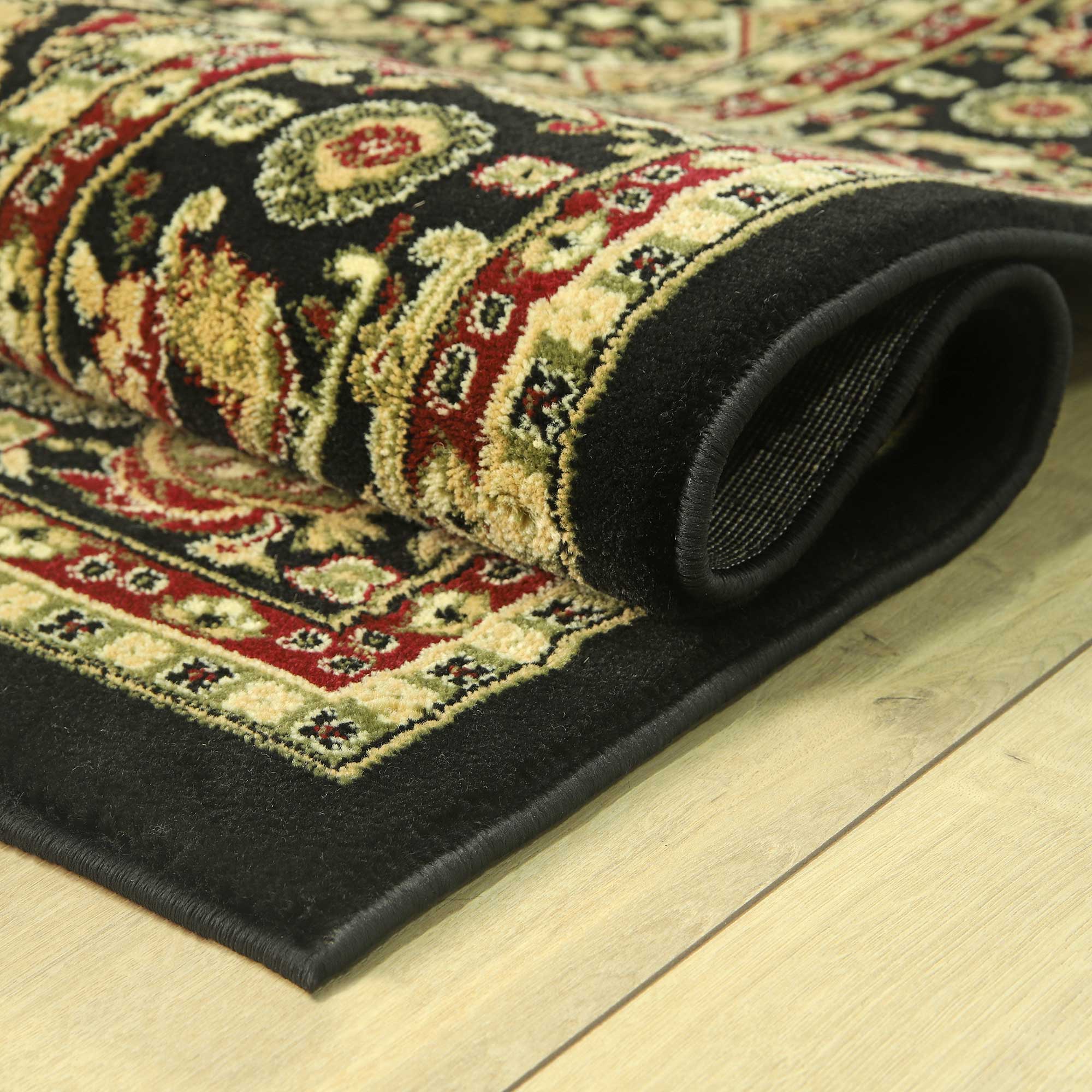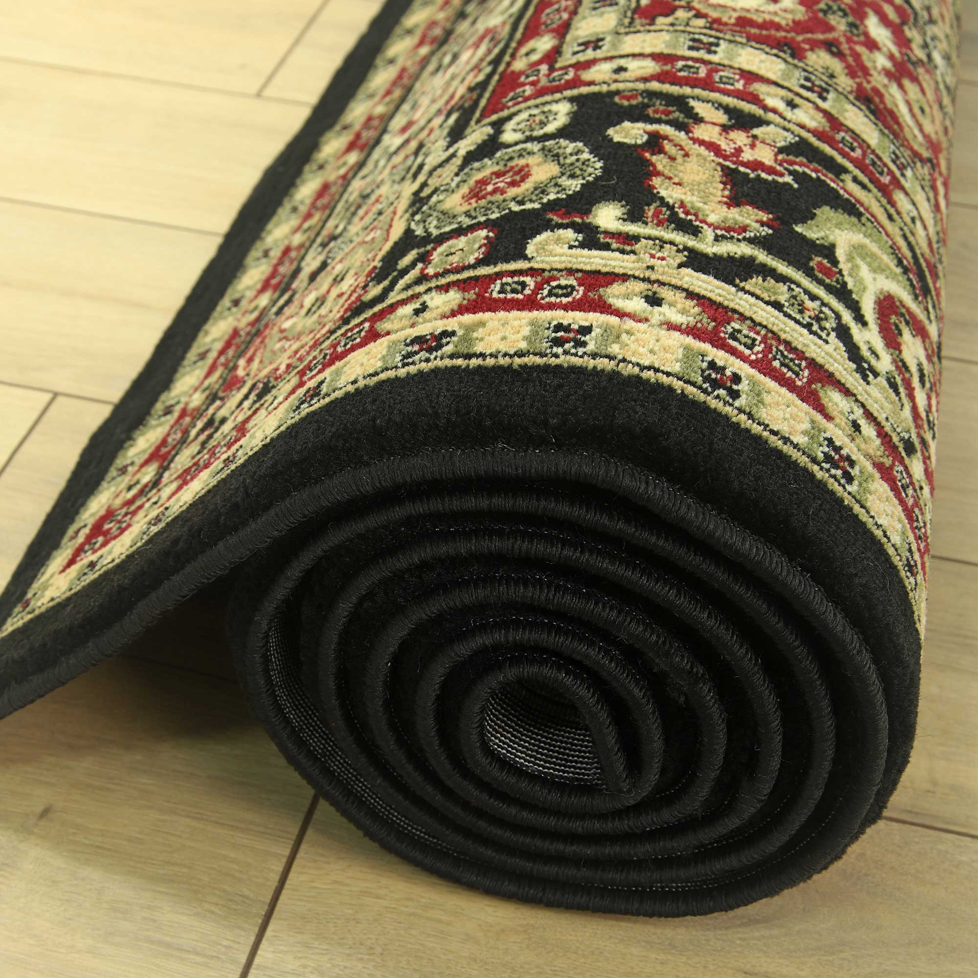 ORIENTALNY DYWAN BELVEDERE CZARNY DYWAN DO SALONU DO PRZEDPOKOJU KREMOWY GRUBY GĘSTY (1546A black/black), 100x180 cm