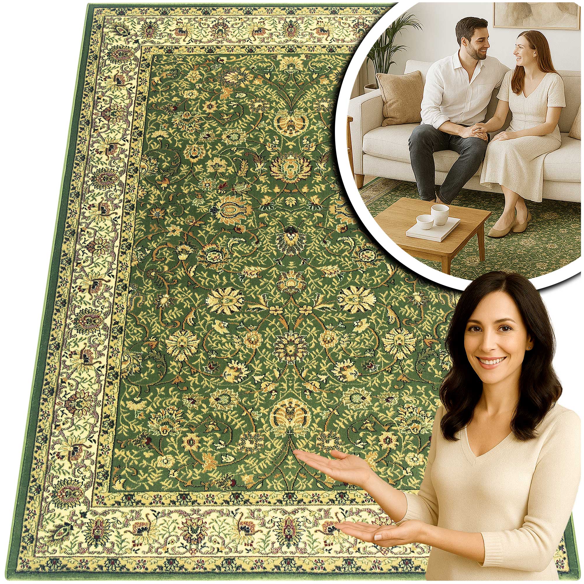 ORIENTALNY DYWAN BELVEDERE ZIELONY DYWAN DO SALONU DO PRZEDPOKOJU GRUBY GĘSTY (1536A moss/moss ), 100x180 cm