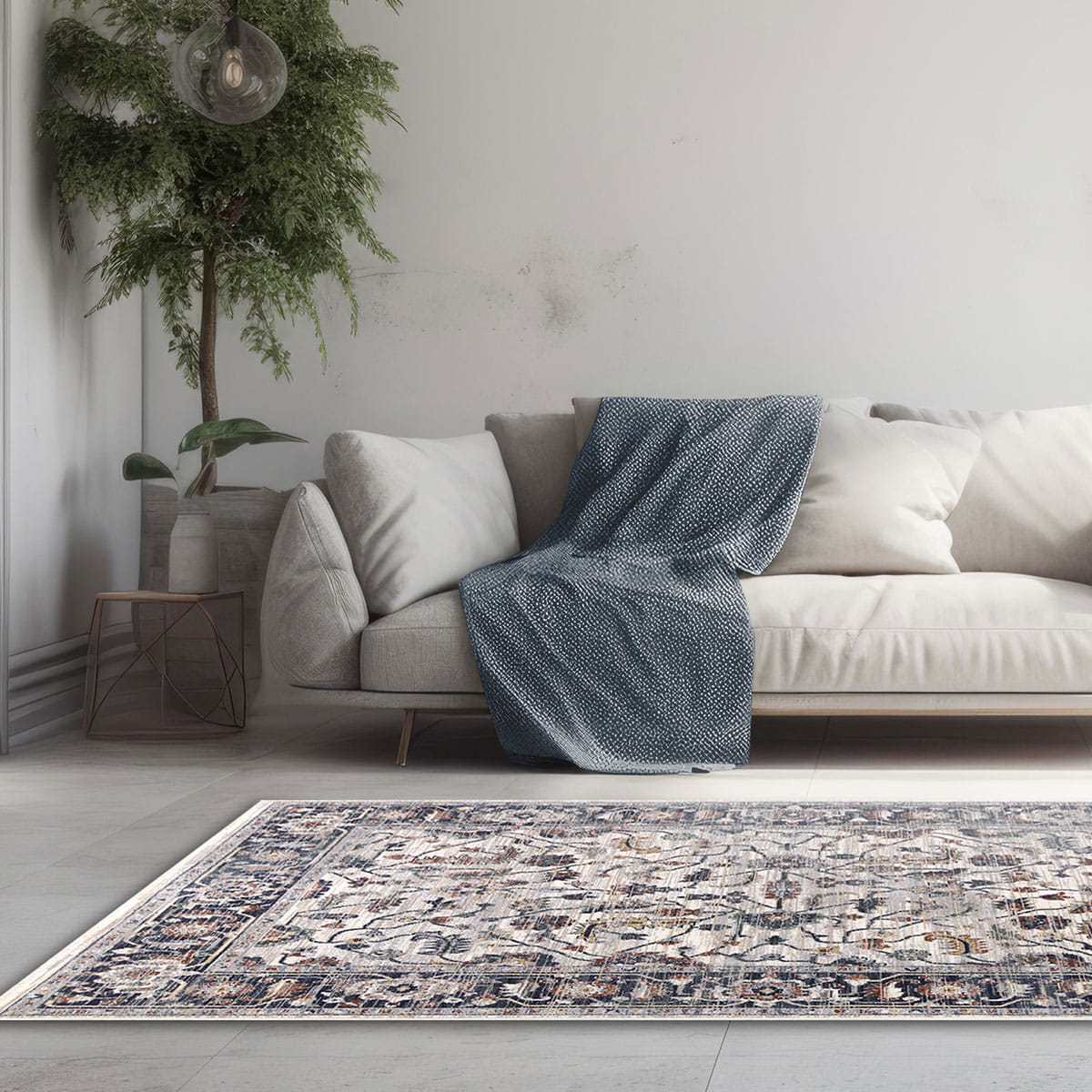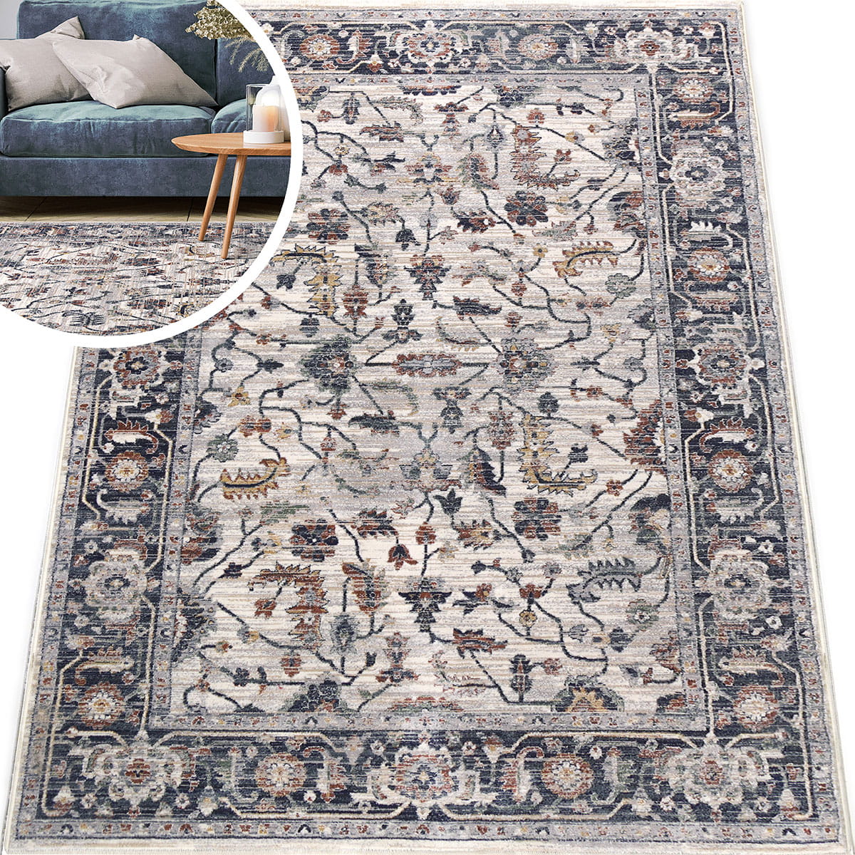 ORIENTALNY DYWAN DO SALONU - ROSSA - BEŻOWY DYWAN VINTAGE DO POKOJU (DV55C grey/cream), 120x180 cm