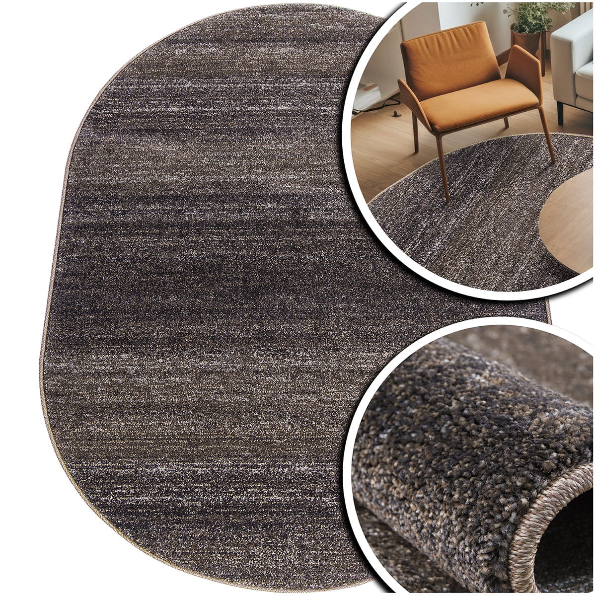 OWALNY BRĄZOWY DYWAN DO SALONU – GRUBY NOWOCZESNY DYWAN DO POKOJU - ADVENTURE (17352-18422), 160x230 cm