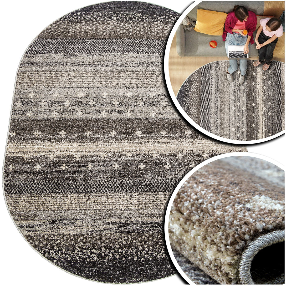 OWALNY DYWAN DO SALONU – GRUBY NOWOCZESNY DYWAN DO POKOJU - ADVENTURE (17882-18421), 140x200 cm