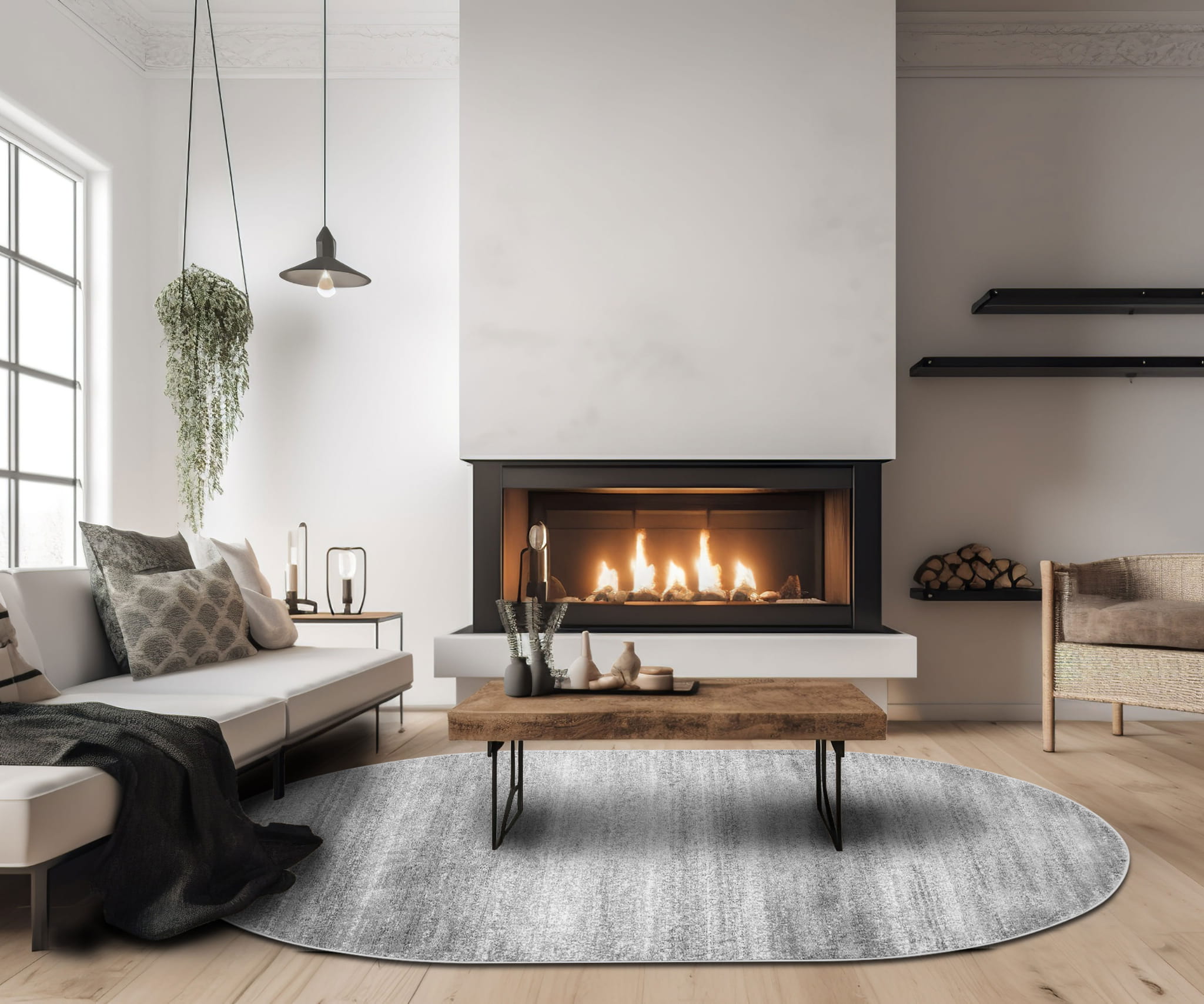 OWALNY SZARY DYWAN DO SALONU – GRUBY NOWOCZESNY DYWAN DO POKOJU - ADVENTURE (17352-18411), 160x230 cm