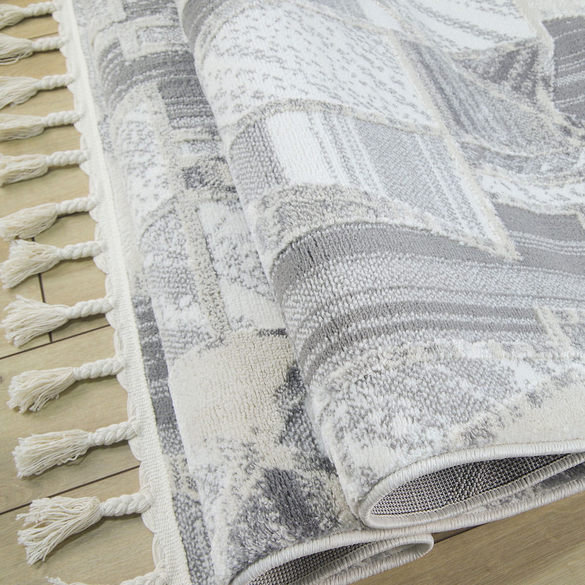Wchodząc na ten dywan, poczujesz miękkość pod stopami, która otuli Cię przyjemnym ciepłem. Runo o różnej wysokości nie tylko zapewnia niesamowity komfort, ale również dodaje tekstury i głębi. Dodatkowo, dywany te lekko połyskują w zależności od ułożenia runa i kąta padania światła, co nadaje im elegancji i sprawia, że wyglądają jeszcze bardziej luksusowo. Frędzle dopełniają całość, podkreślając wyjątkowy charakter dywanu.