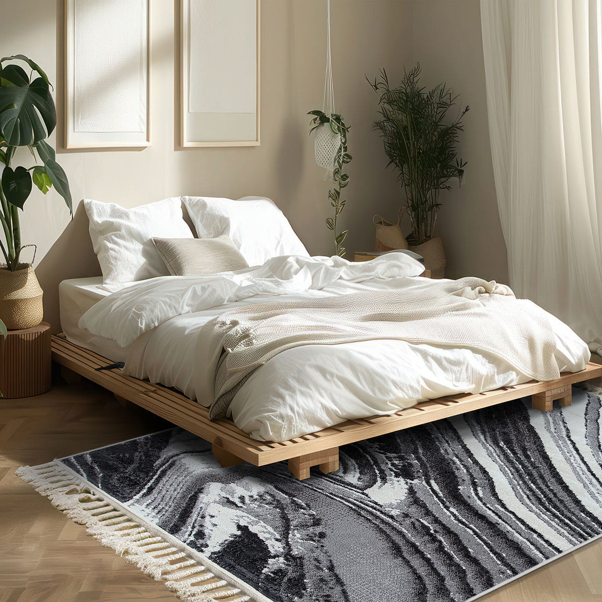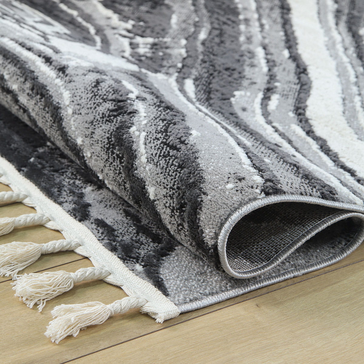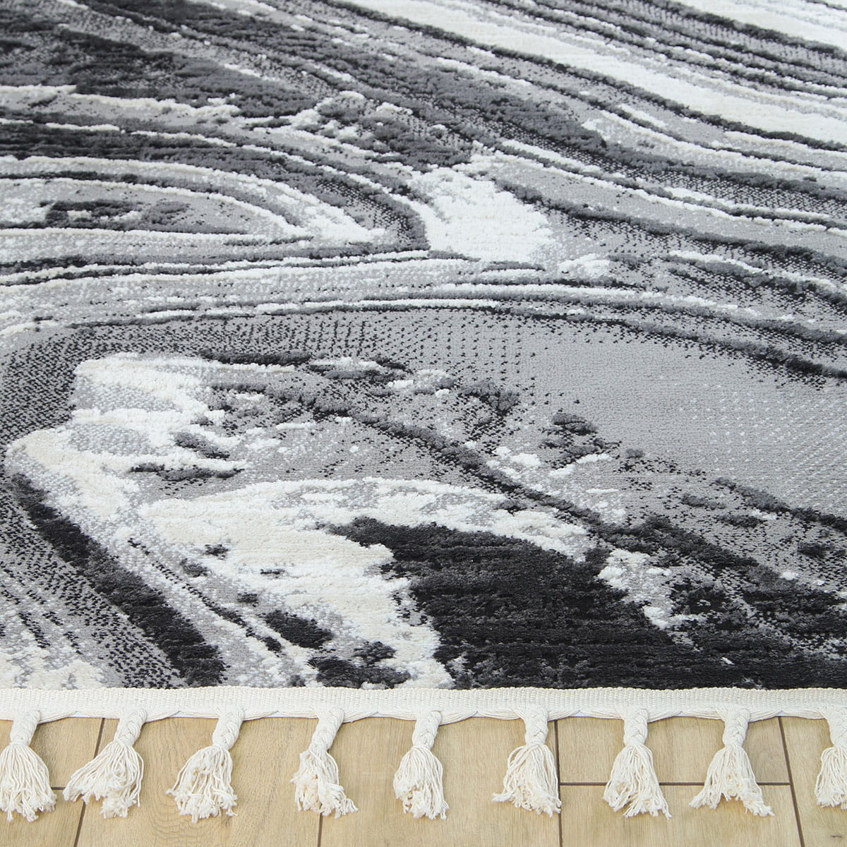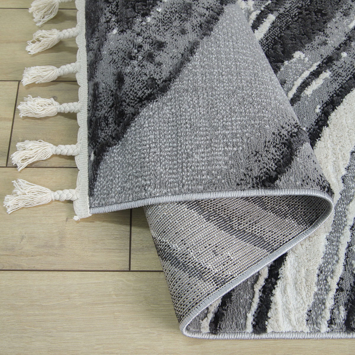 Wchodząc na ten dywan, poczujesz miękkość pod stopami, która otuli Cię przyjemnym ciepłem. Runo o różnej wysokości nie tylko zapewnia niesamowity komfort, ale również dodaje tekstury i głębi. Dodatkowo, dywany te lekko połyskują w zależności od ułożenia runa i kąta padania światła, co nadaje im elegancji i sprawia, że wyglądają jeszcze bardziej luksusowo. Frędzle dopełniają całość, podkreślając wyjątkowy charakter dywanu.